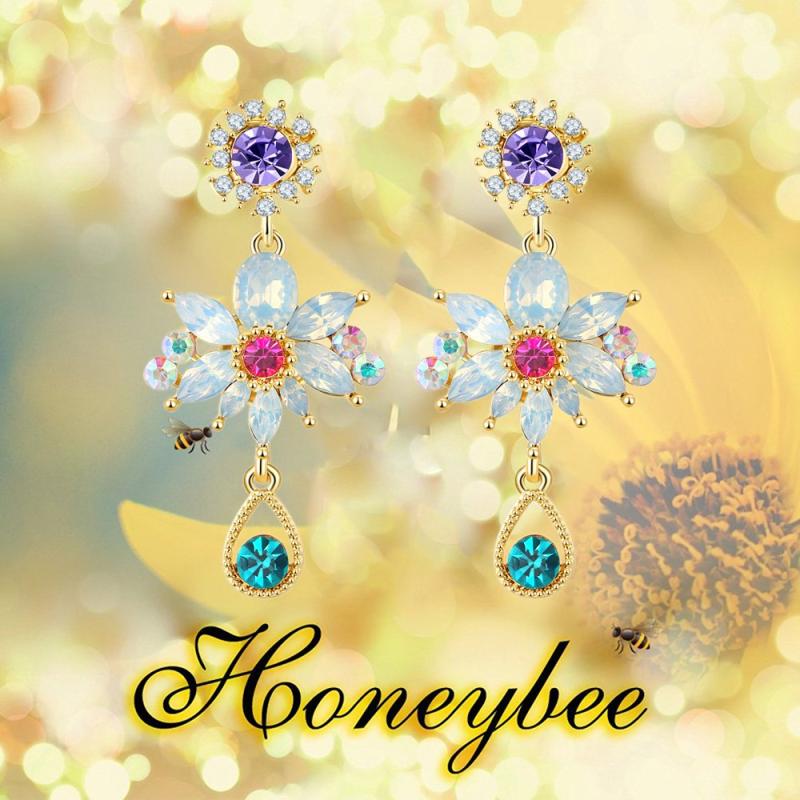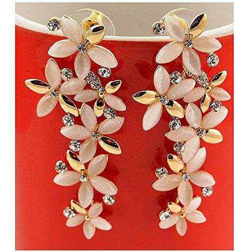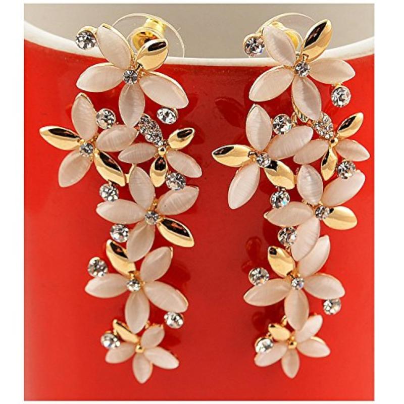 Adorn yourself with the enchanting beauty of Opal Gemstone in these floral dangle earrings. Handcrafted with lustrous Opal elements, these earrings are a fascinating combination of elegance and charm.