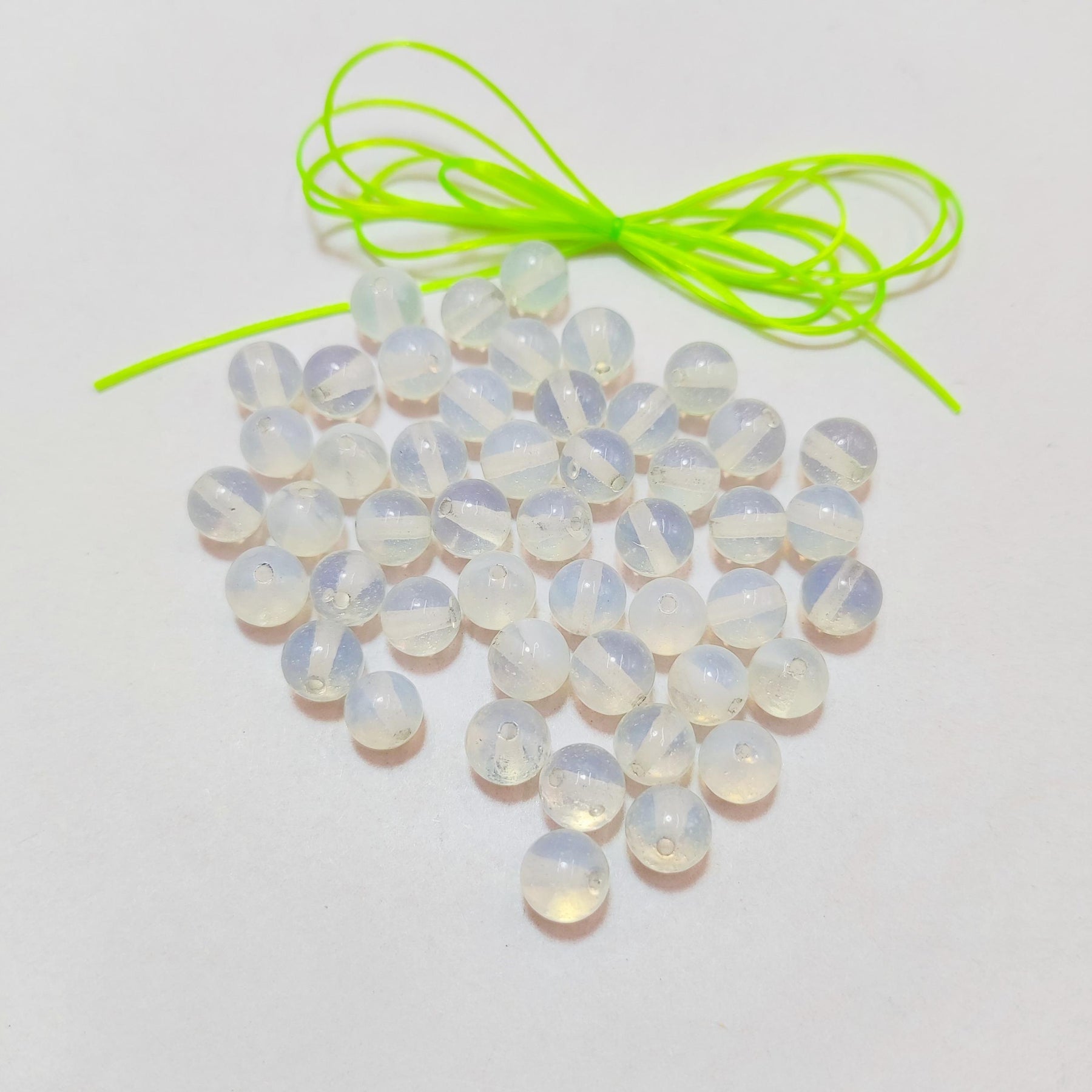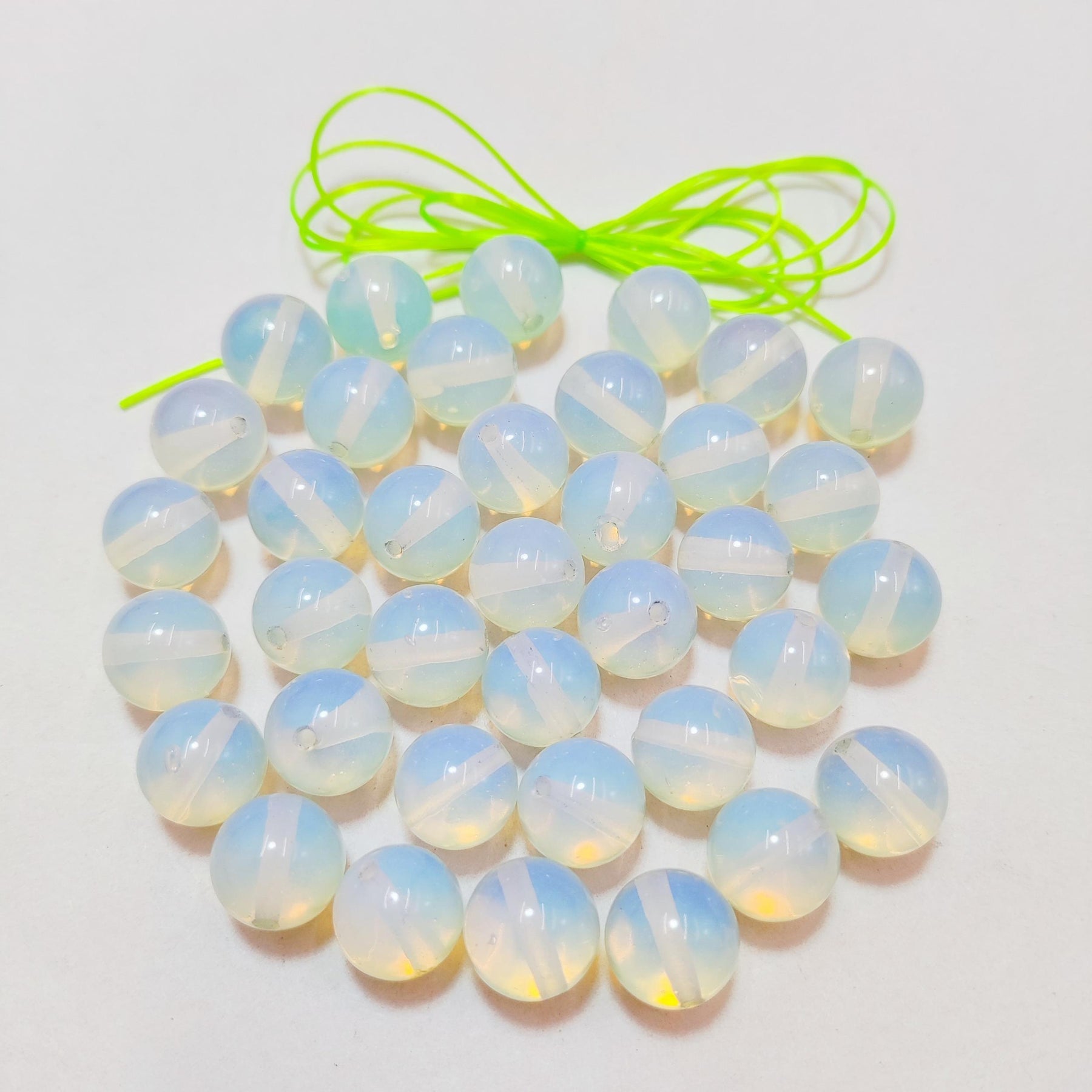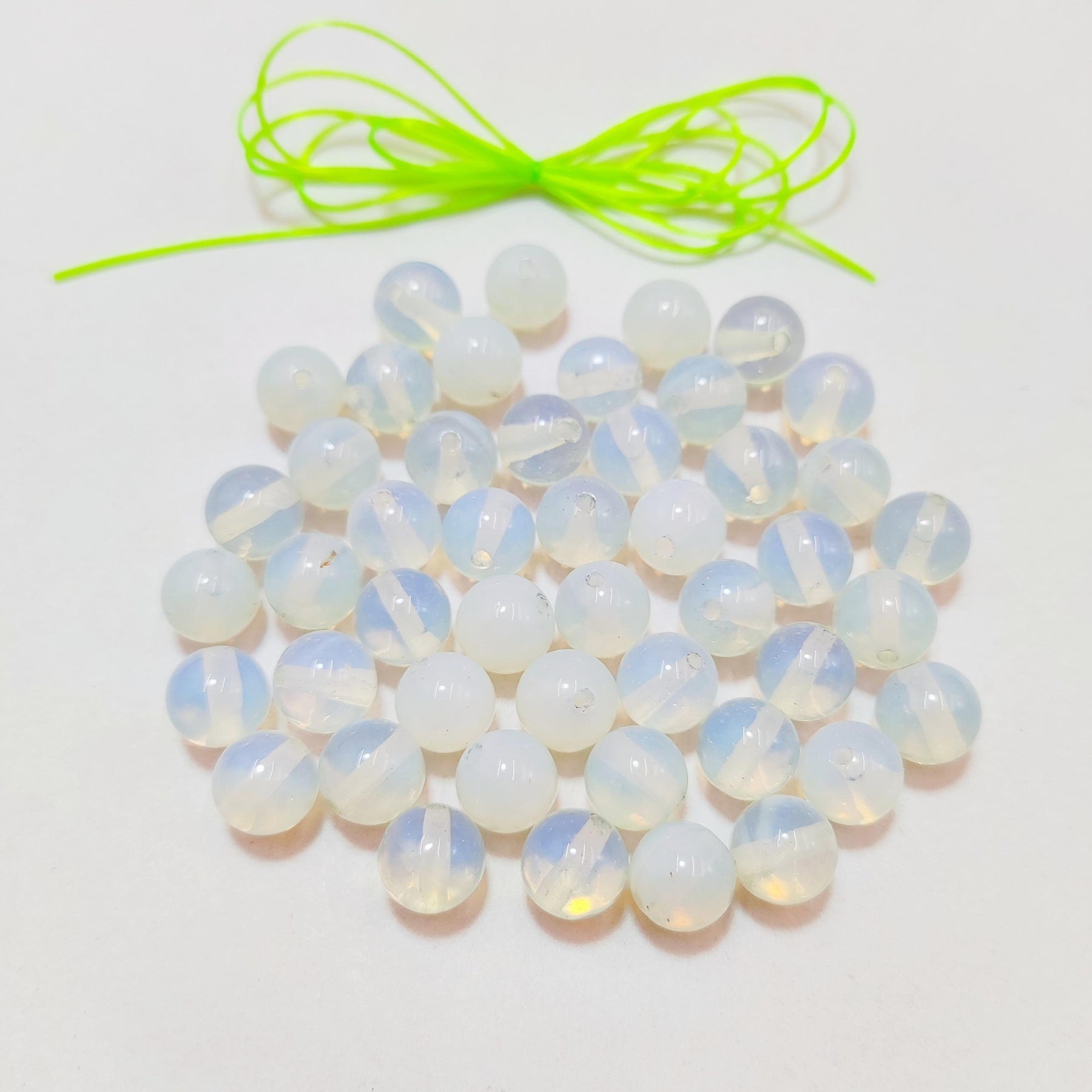 Enhance your DIY jewelry creations with these opal natural stone loose beads. Each set includes 50 pieces, perfect for making bracelets. The beads are strung on elastic rope for easy crafting. Create unique and stylish jewelry pieces with these beautiful opal beads.