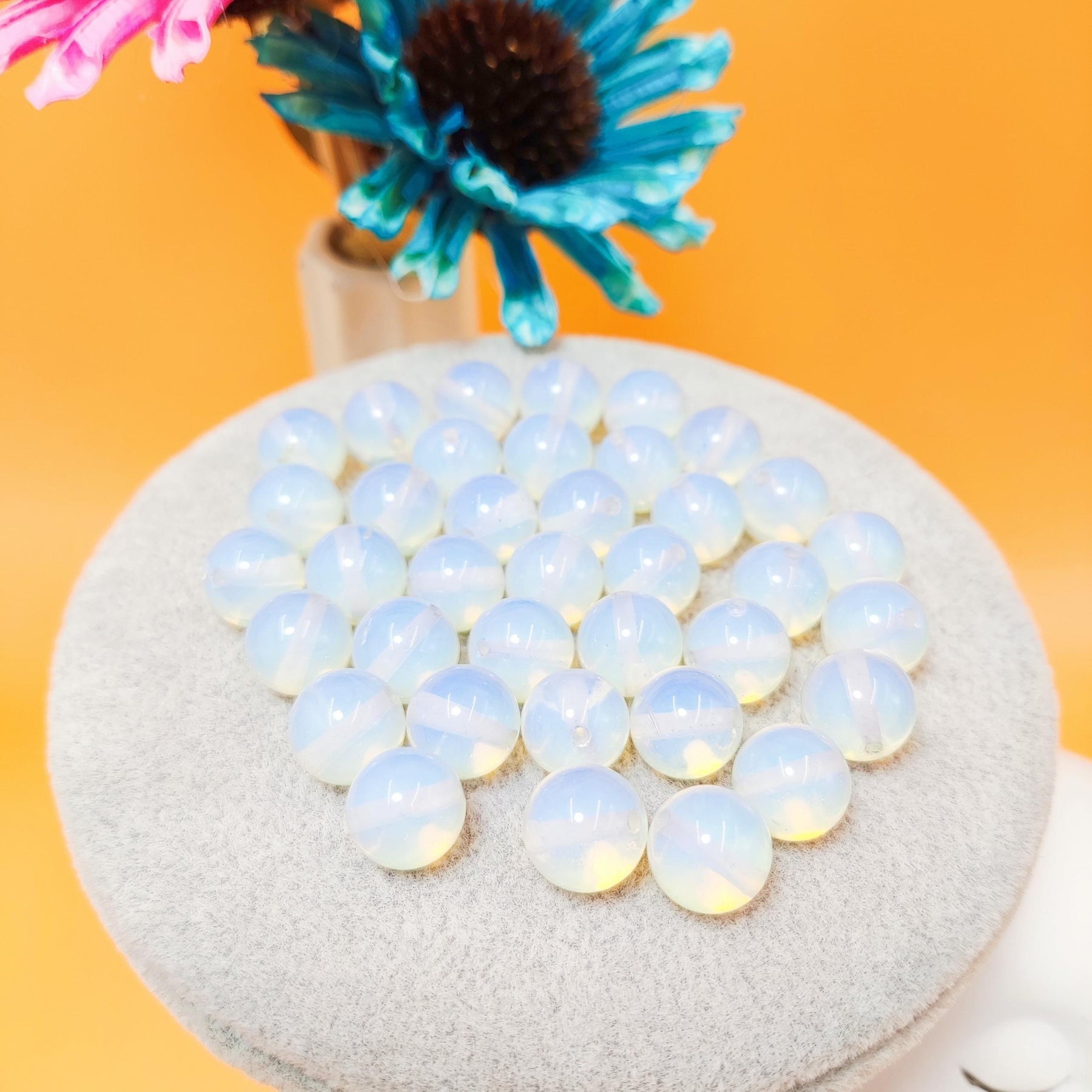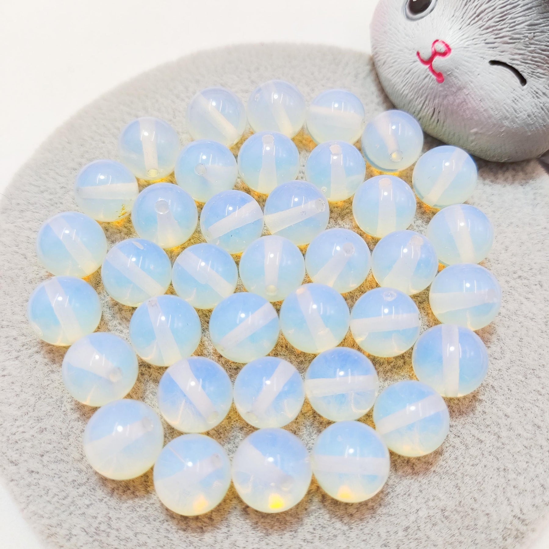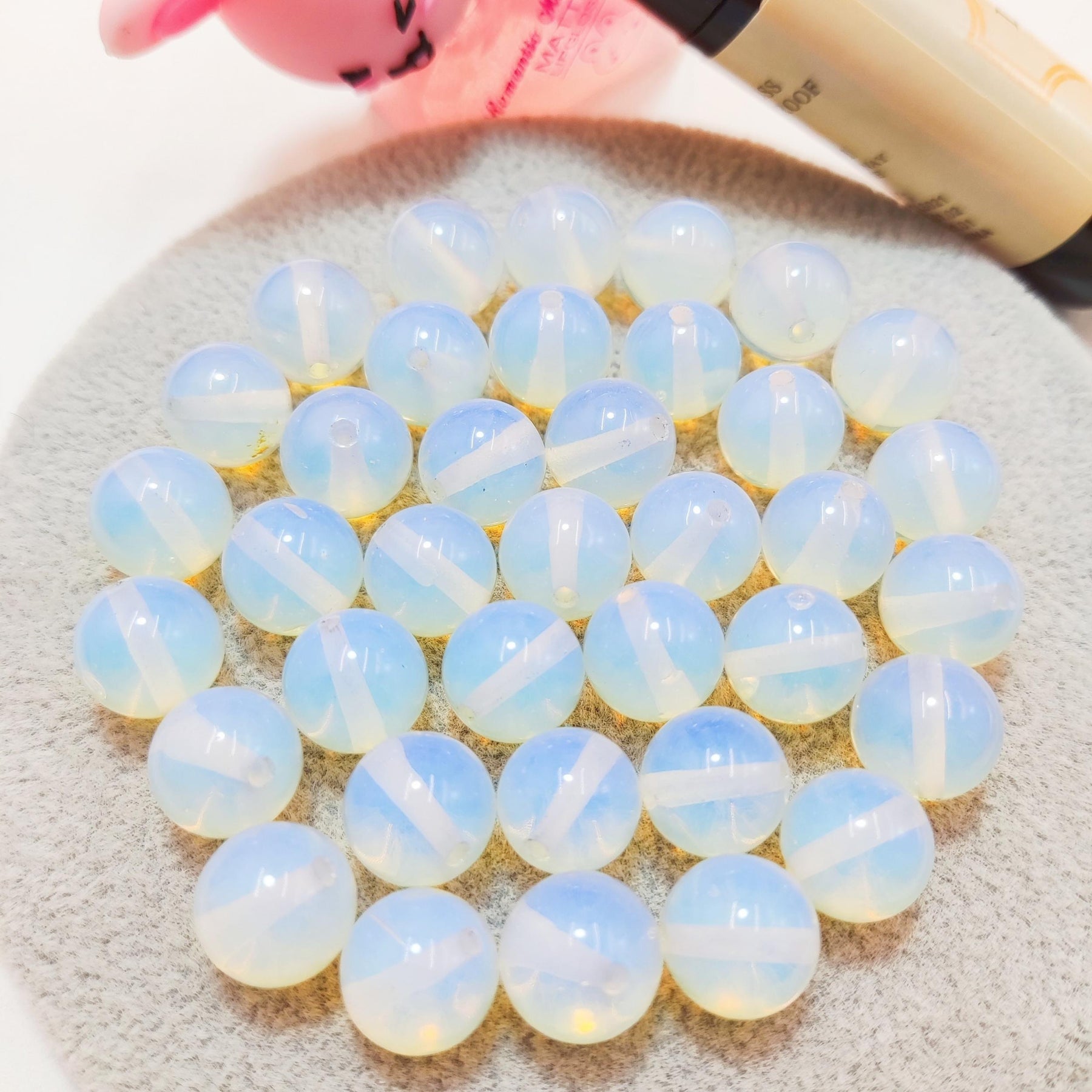 Enhance your DIY jewelry creations with these opal natural stone loose beads. Each set includes 50 pieces, perfect for making bracelets. The beads are strung on elastic rope for easy crafting. Create unique and stylish jewelry pieces with these beautiful opal beads.