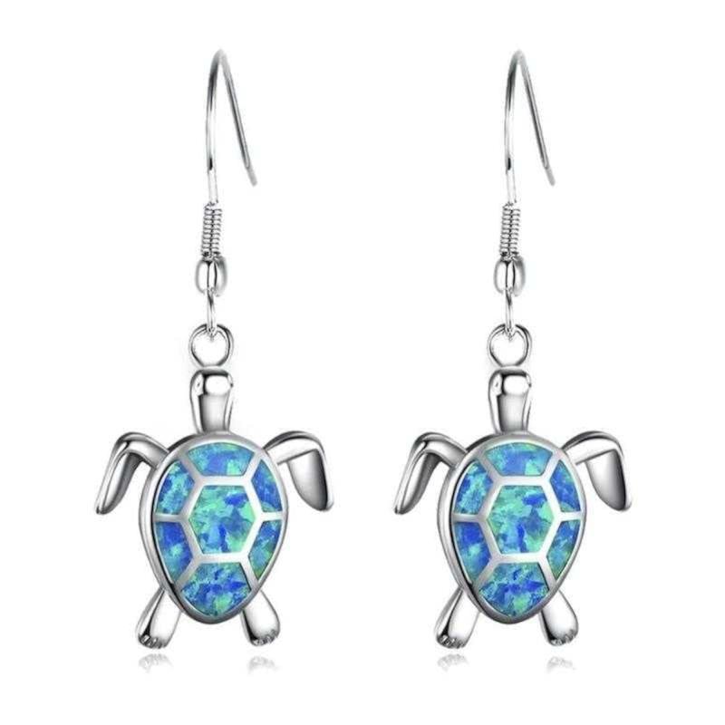 This elegant jewelry set features a silver plated opal turtle pendant on a box chain. Perfect accessory for girls and turtle lovers.