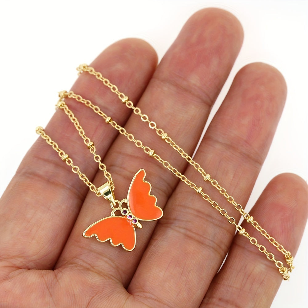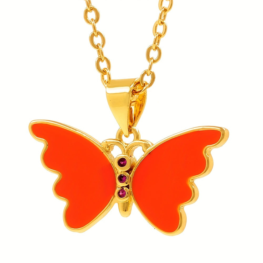 This pendant necklace features an orange butterfly animal shape design, perfect as a gift for men, women, or couples.