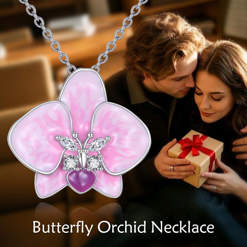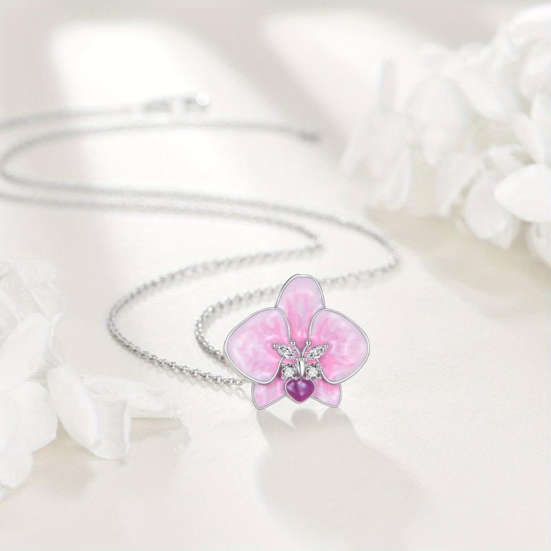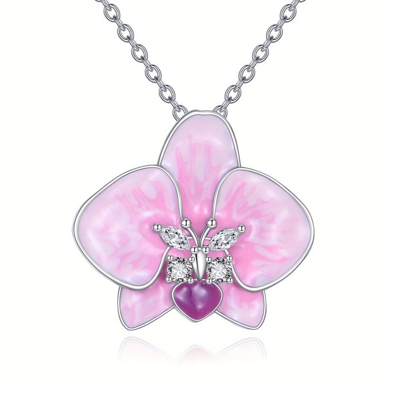 This stunning Orchid pendant necklace is crafted from 925 Sterling Silver, featuring a beautiful pink flower design inspired by tropical Hawaii. A perfect gift for women on vacation or their birthday.