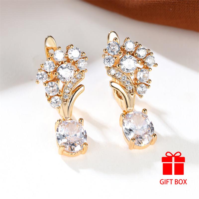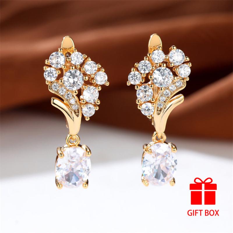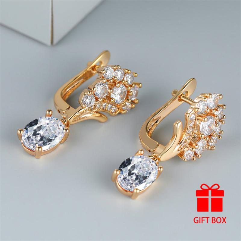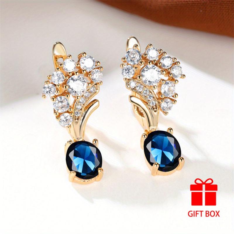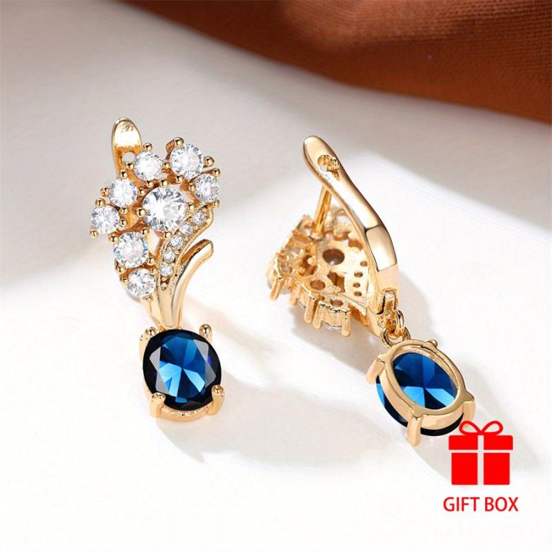 These dazzling oval cut cubic zirconia earrings in a golden tone are perfect for weddings, parties, and daily wear. They are durable and shimmering, adding a touch of elegance to any outfit. These novelty earrings make a statement wherever you go.