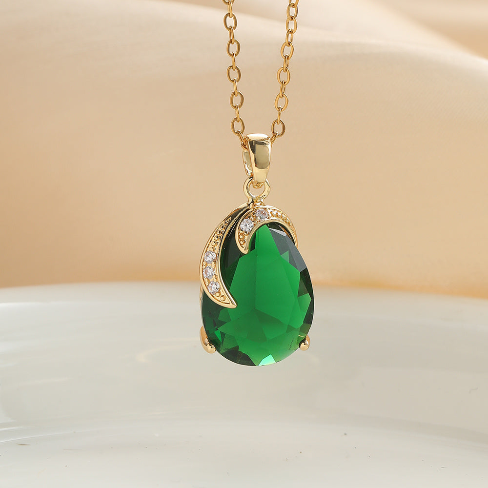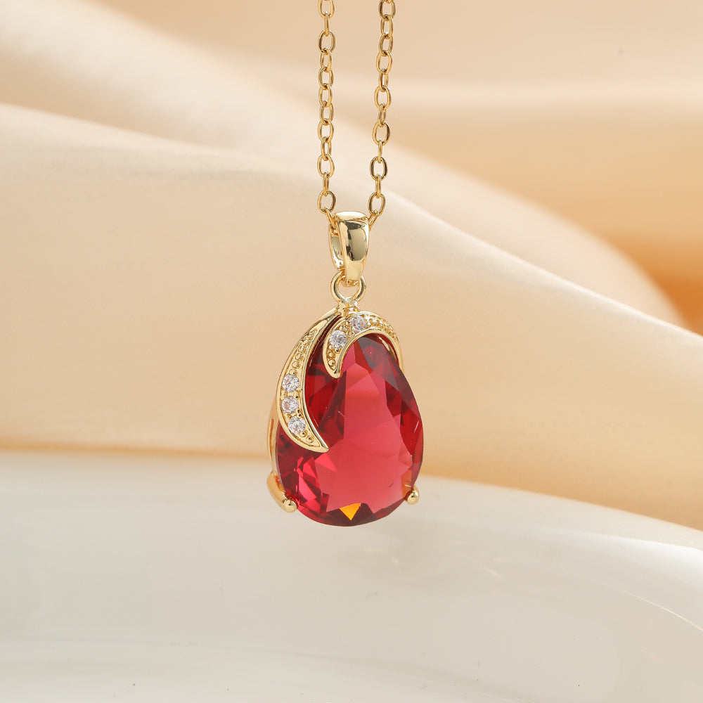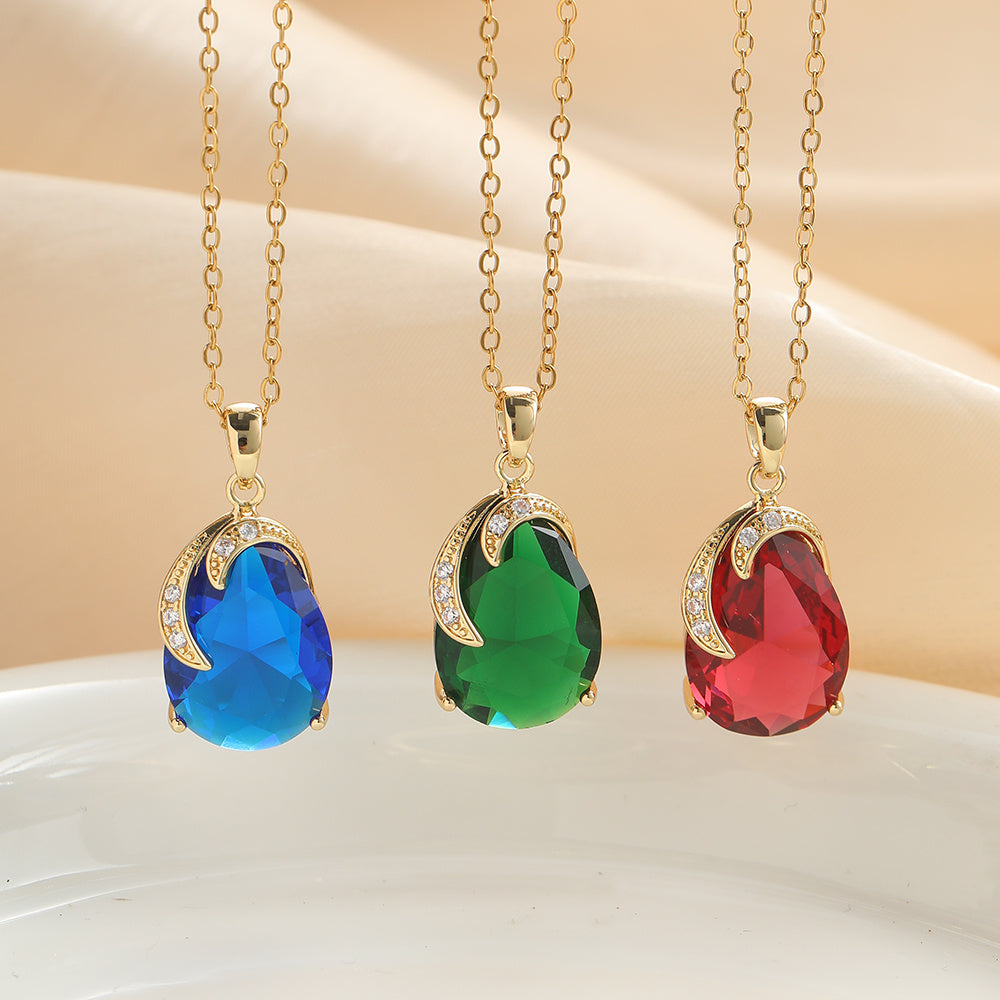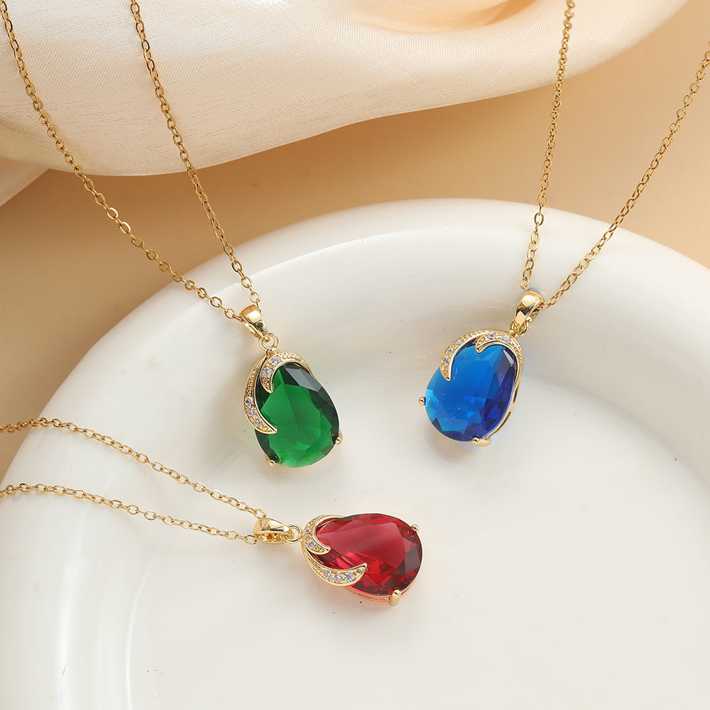 Elegant oval pendant necklace crafted from stainless steel with synthetic cubic zirconia stone, perfect for holiday celebrations and banquets. Features a December birthstone design.