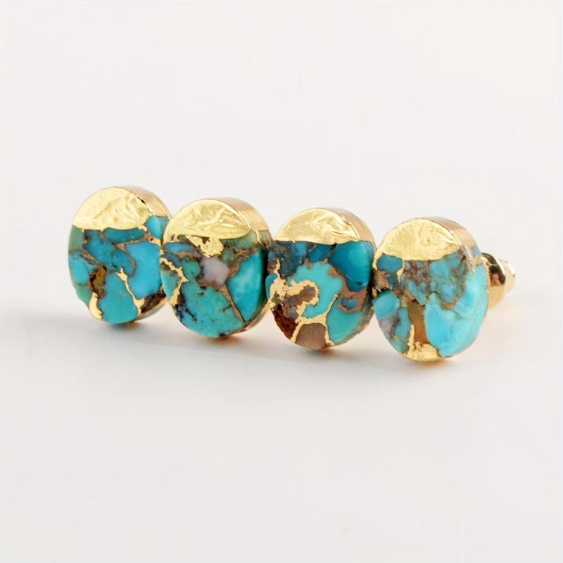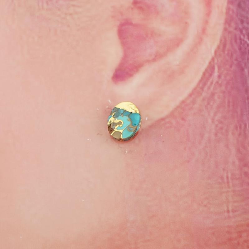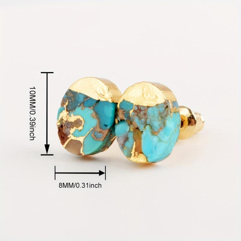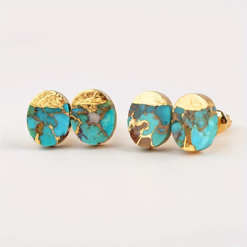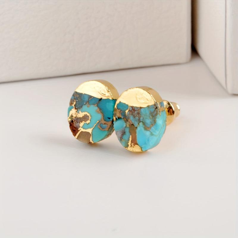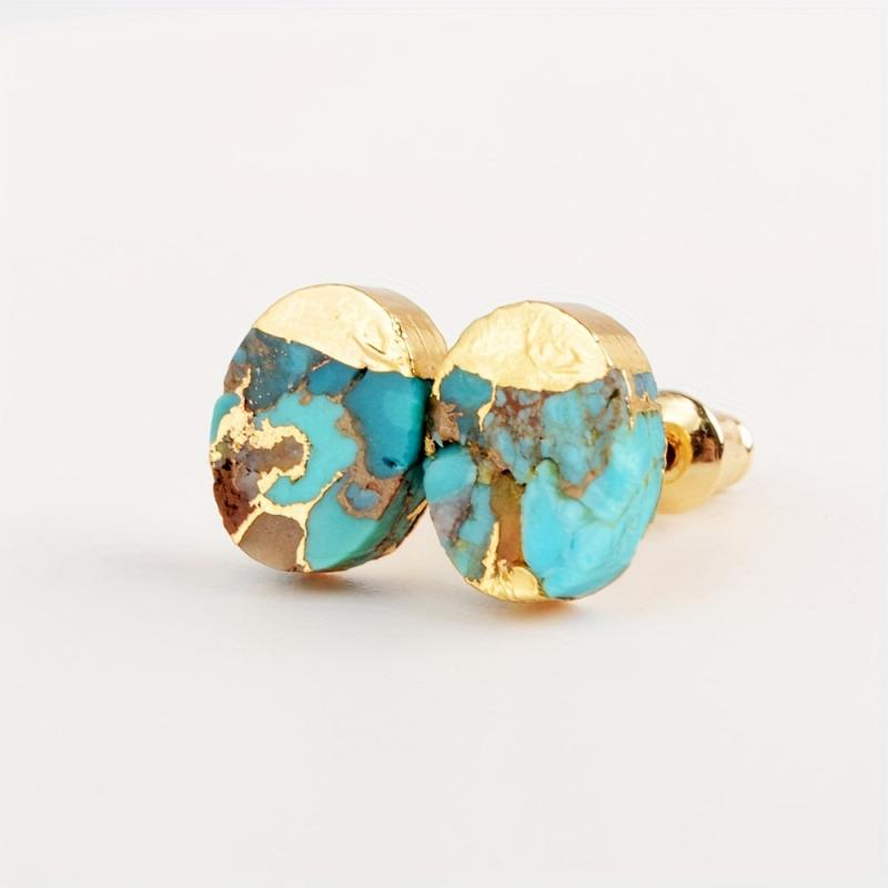 Add a touch of elegance to your outfit with these stunning oval turquoise earrings plated in gold.