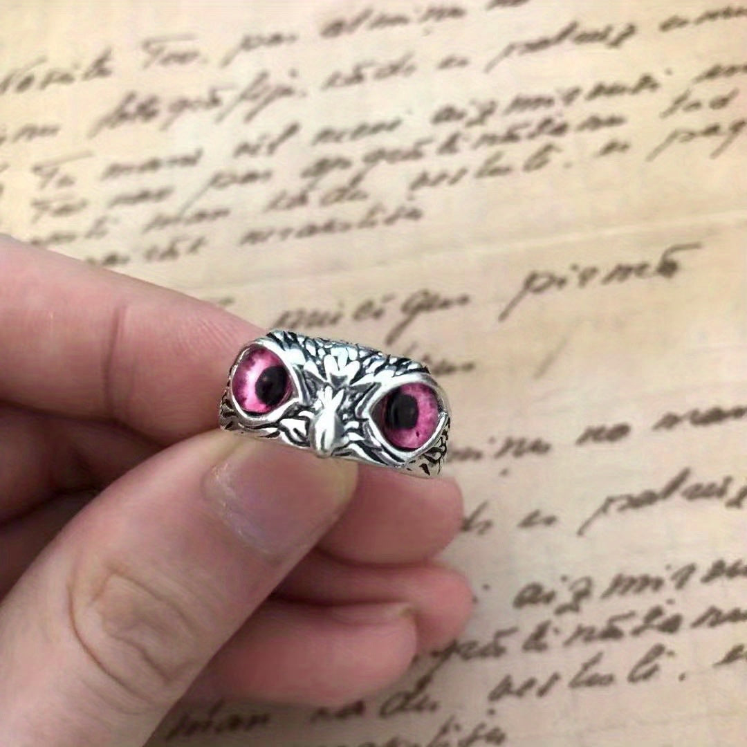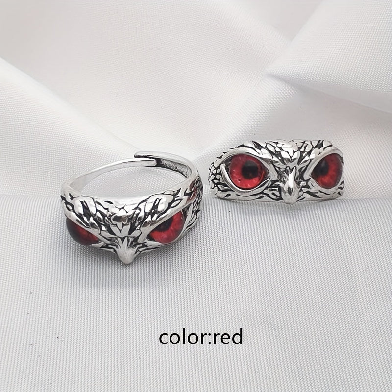 Embrace a unique style with this owl devil's eye ring, featuring a retro and creative design. The exaggerated animal opening design adds a touch of intrigue to your look. The ring is adjustable to fit various finger sizes.