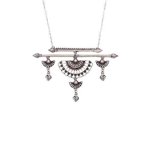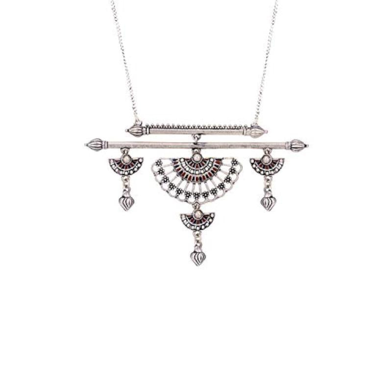 Elegant long necklace chain with half mandala wing drops in oxidised brass plating.