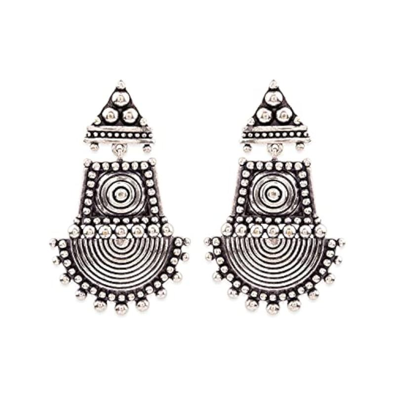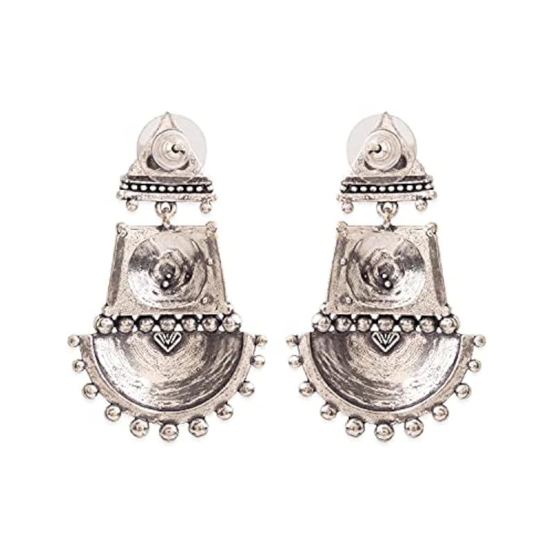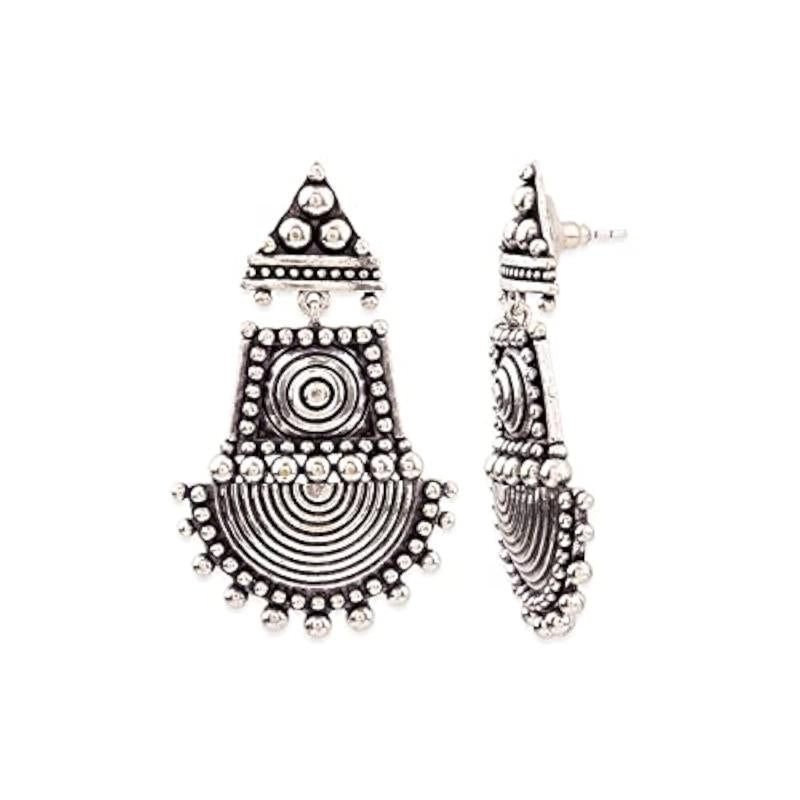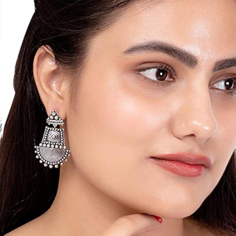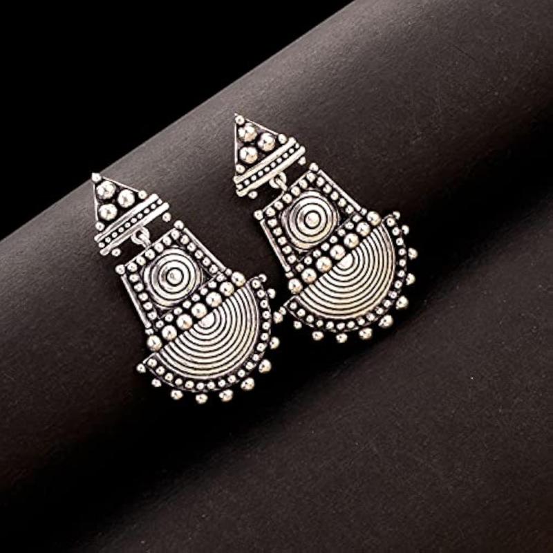 Enhance your style with these stylish oxidised brass earrings that feature a traditional design. Perfect for any occasion.
