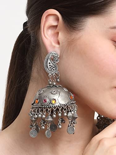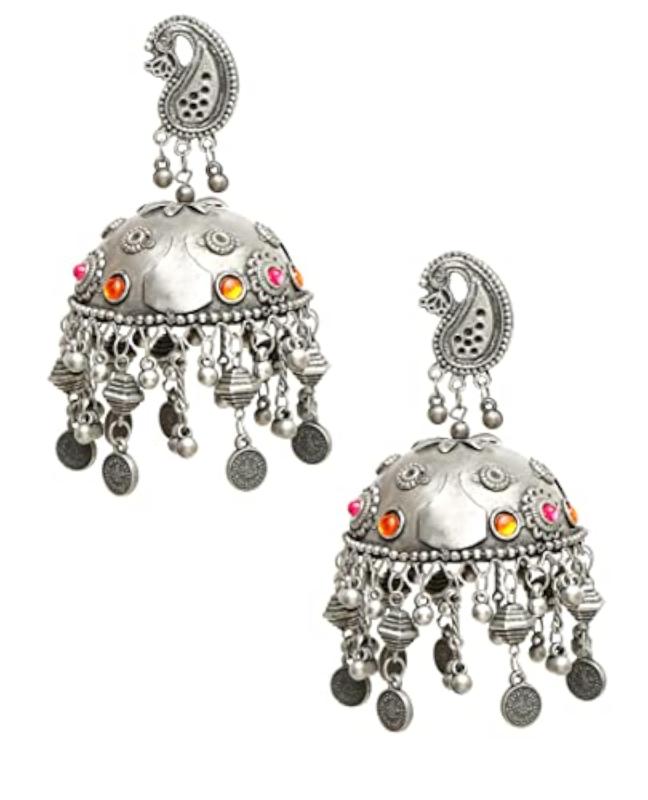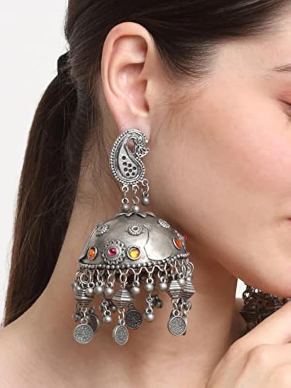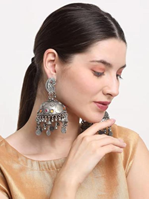 Get the celebrity look with these stylish big jhumki earrings featuring an oxidised silver finish.