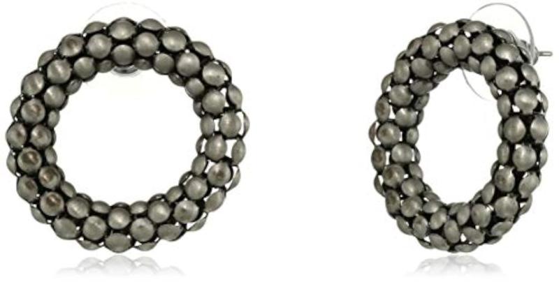 Elevate your look with these round silver colour oxidised hoop stylish studs, perfect for any occasion.