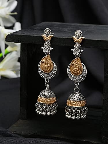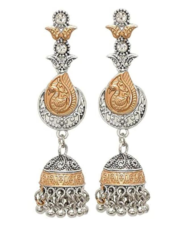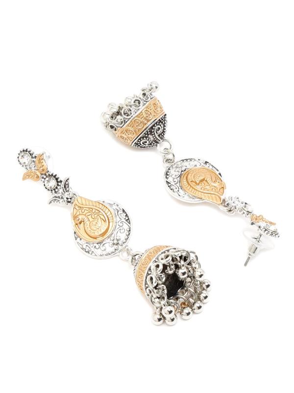 Elegant oxidised silver jhumka earrings crafted for women to add a touch of traditional charm to any outfit.