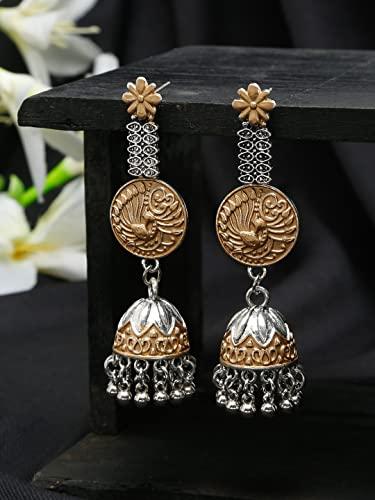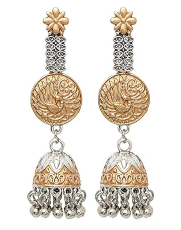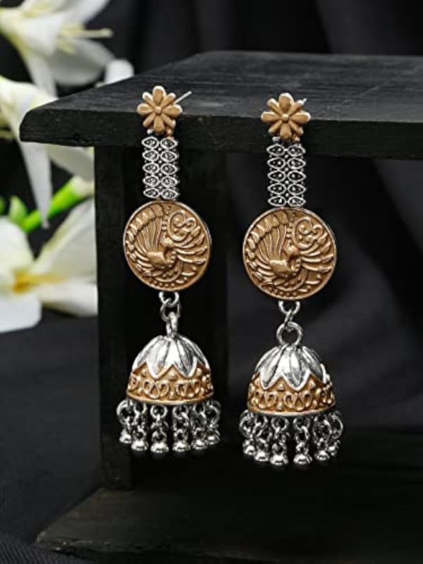 Elegant oxidised silver jhumka earrings that add a touch of traditional charm to any outfit.