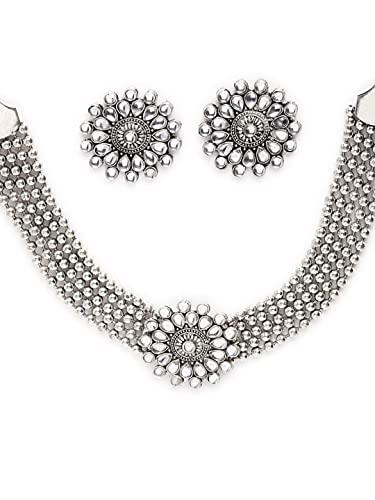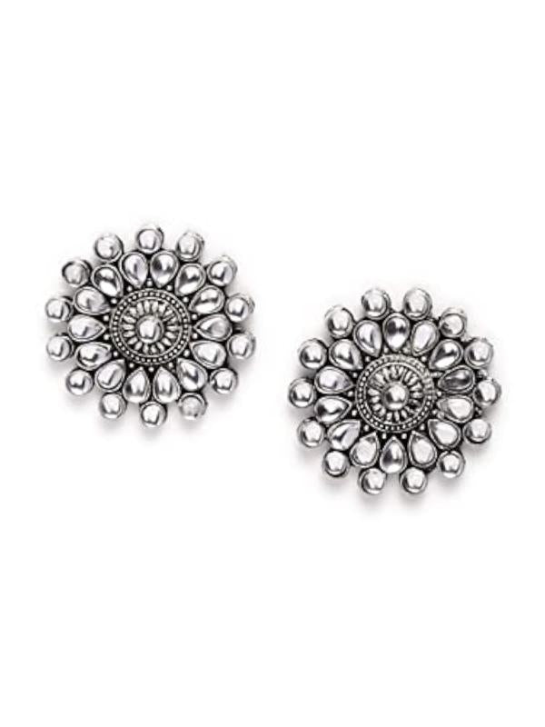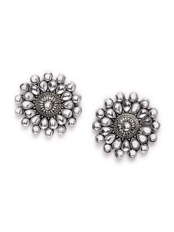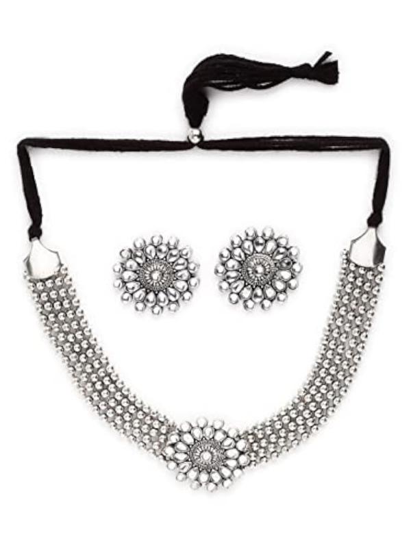 Elegant jewellery set featuring oxidised silver tone with stone studs, perfect for any occasion.