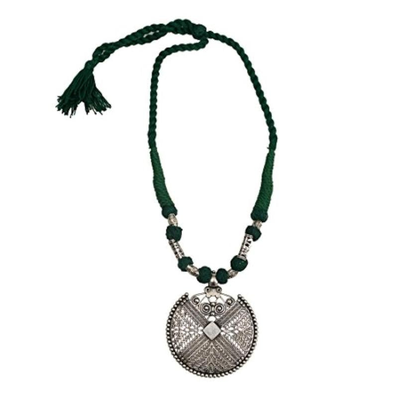 Add a touch of tribal elegance to your look with this antique oxidised pendant necklace. Perfect for any occasion.