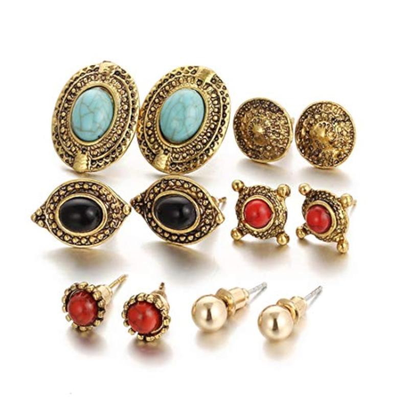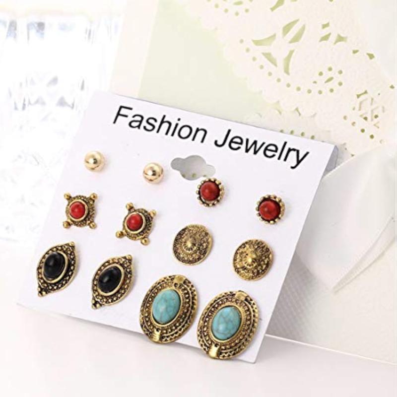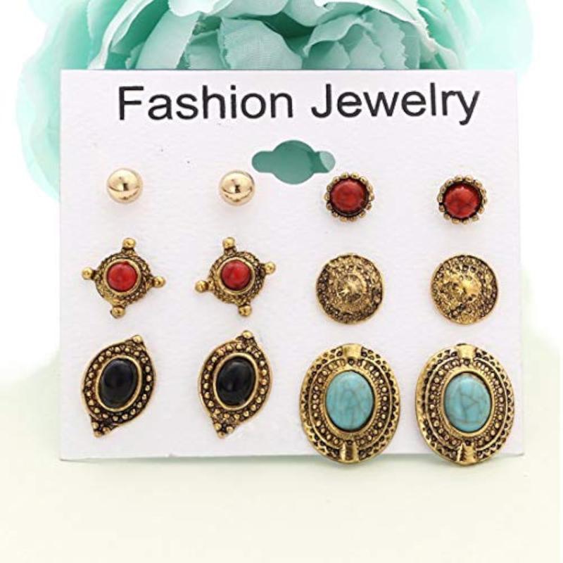 Enhance your style with this set of 6 pairs of charming oxidized stud earrings. Perfect for everyday wear or special occasions.