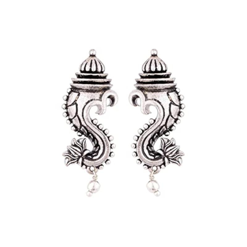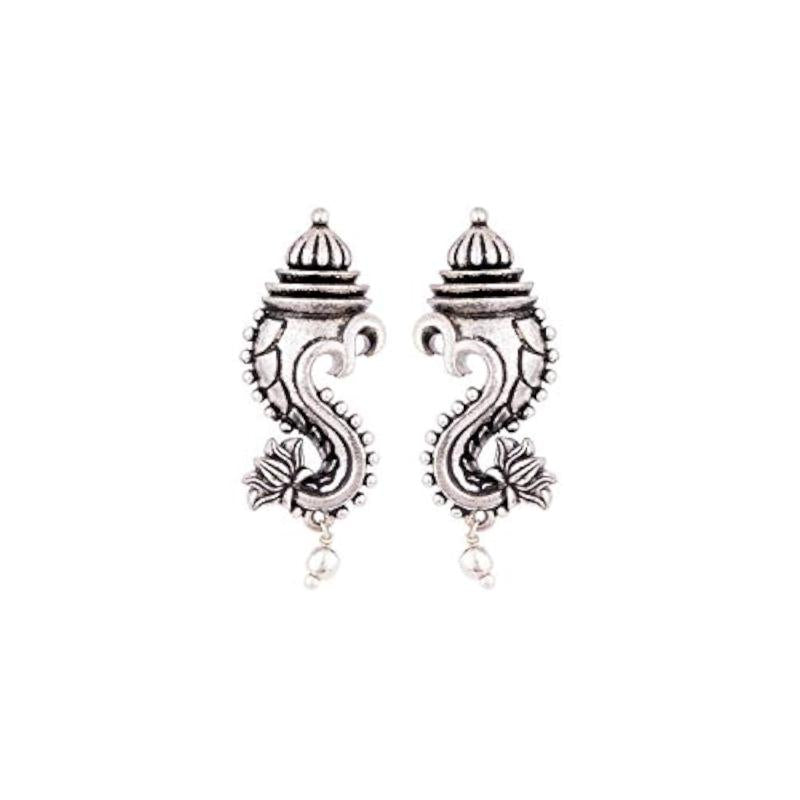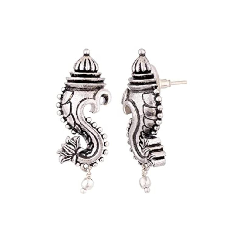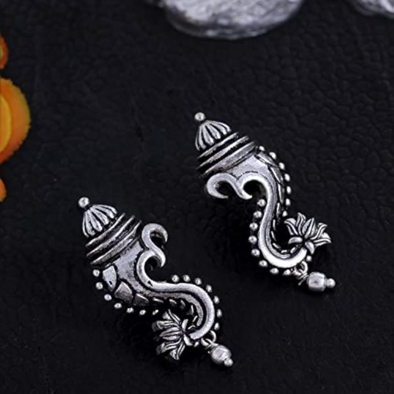 Unique and stylish oxidized stud earrings with religious motifs for an elegant look.