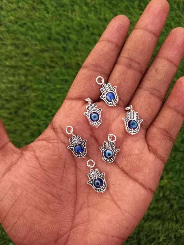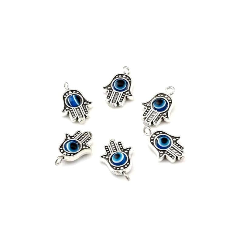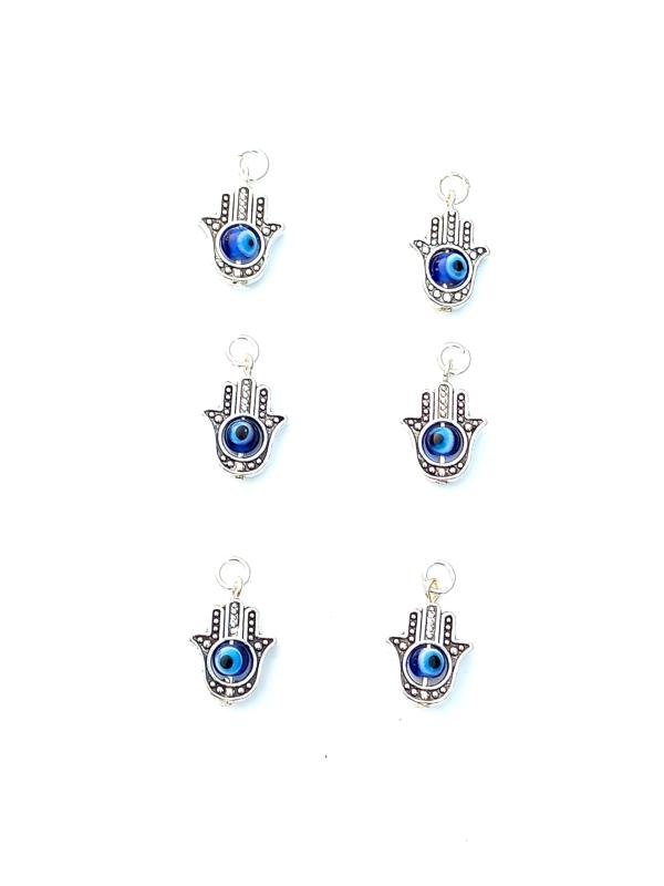 This pack includes 6 Hamsa Fatima Symbol Kabbalah Hand of God charms in antique silver finish. Perfect for jewelry making projects.