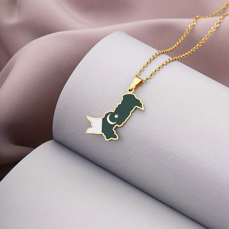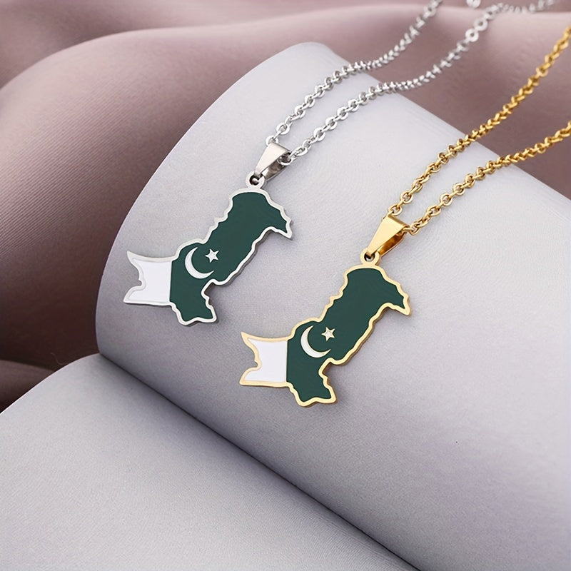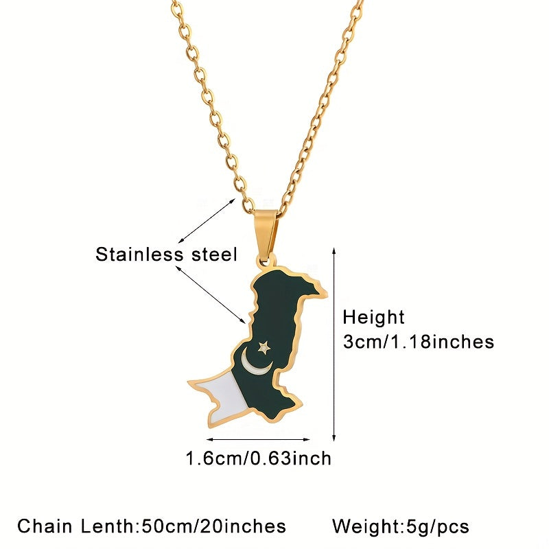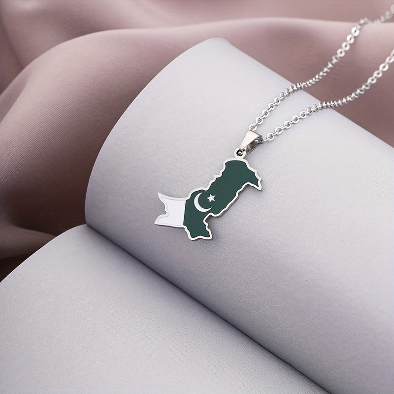 This pendant necklace features a creative design of Pakistan map and flag, making it a perfect decorative accessory for holiday parties. Ideal gift for men.