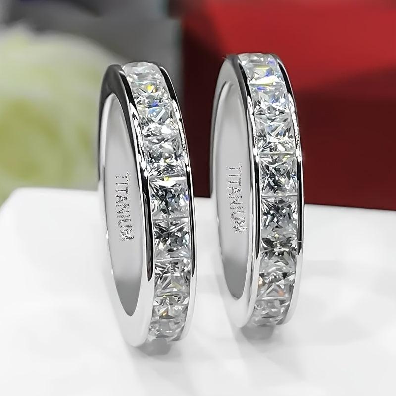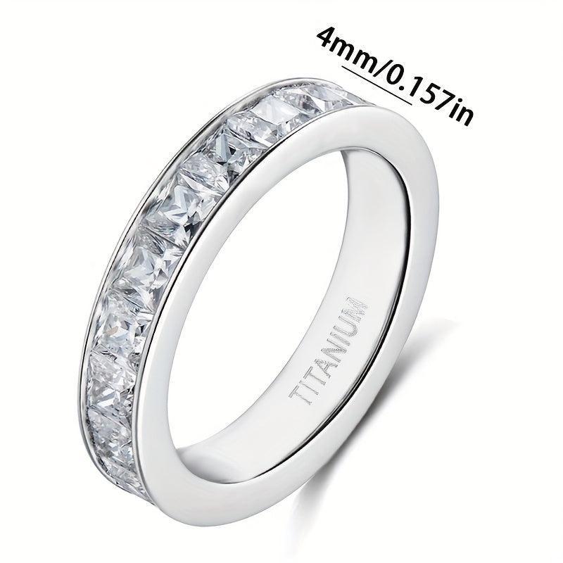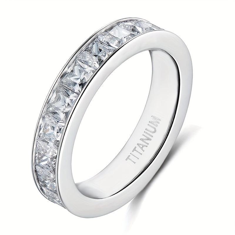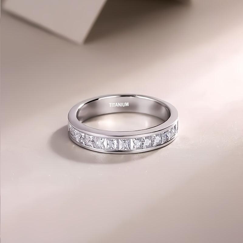 Elegantly crafted titanium ring with sparkling cubic zirconia inlay, perfect for engagements and special occasions.