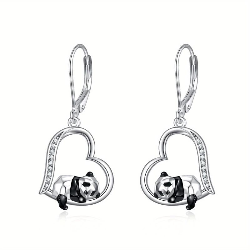Adorable panda leverback earrings made of 925 sterling silver, perfect for women and girls who love pandas. These cute dangle drop earrings are a wonderful addition to any animal lover's collection.