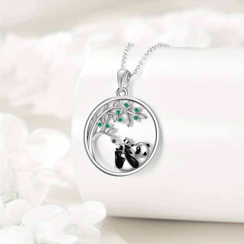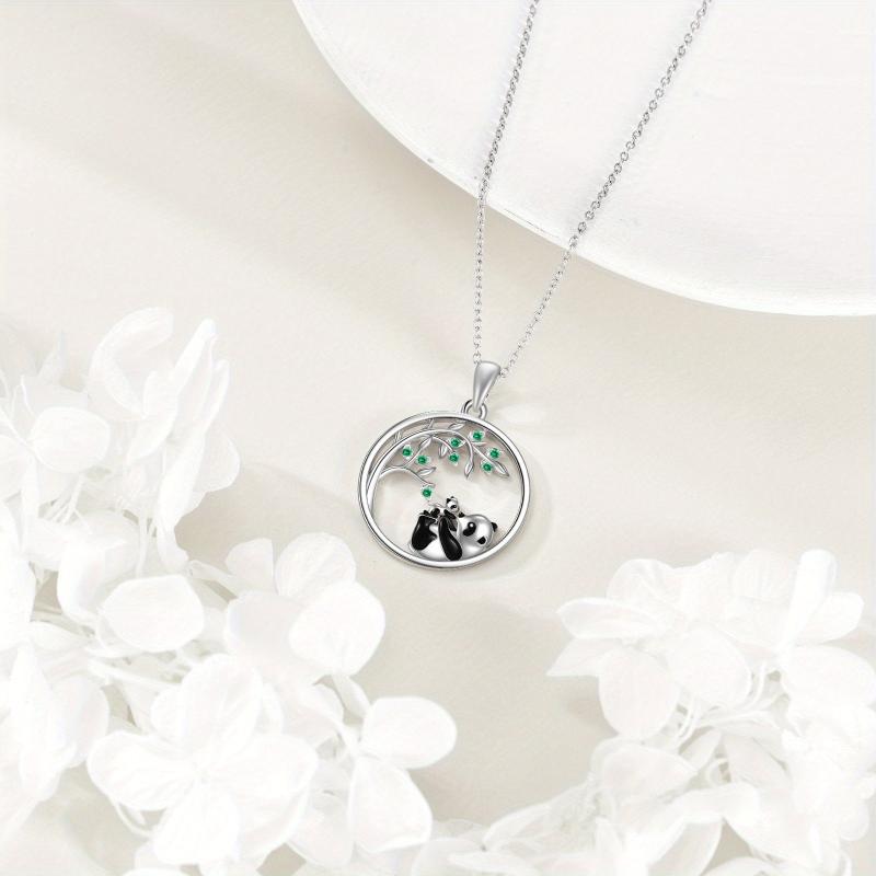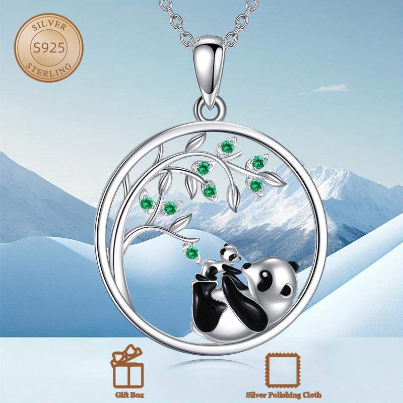 This adorable panda necklace is made of high-quality 925 sterling silver. It is a perfect gift for women, mothers, and sisters. The design features a mother and baby panda under a tree, symbolizing love and family bonds.