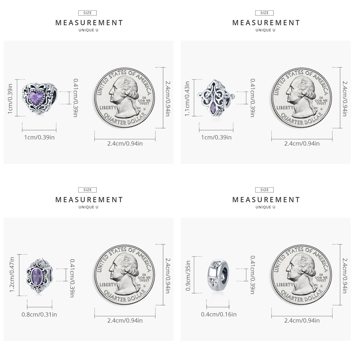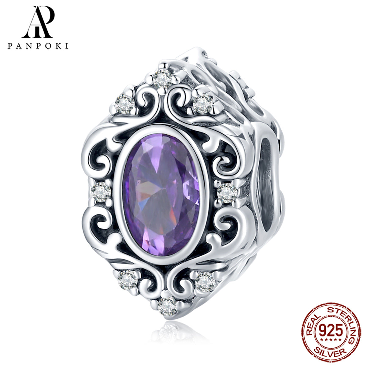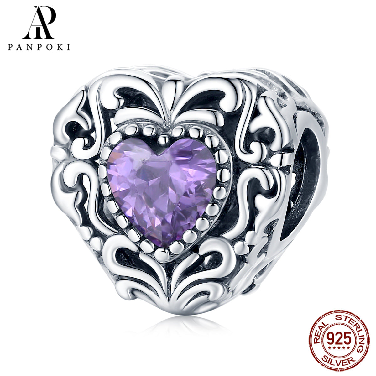 Discover the enchanting beauty of this PANPOKI 925 sterling silver four-piece set featuring purple mysterious love crystal beads pendant and flower charms. Create your own exquisite bracelet and bangle with this fine jewelry set.