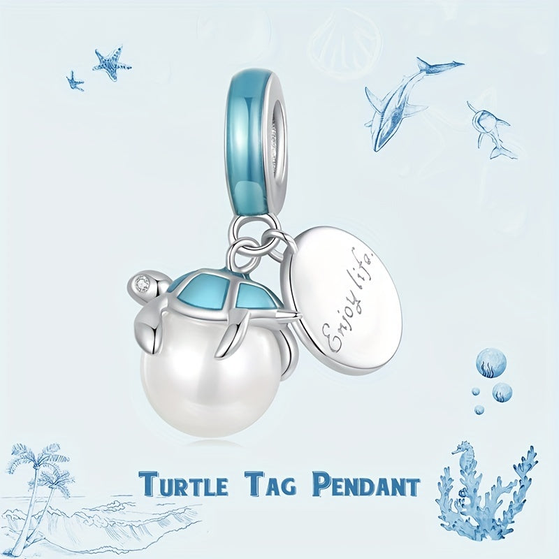 Add a touch of whimsy to your bracelet or necklace with this dreamy ocean-inspired turtle tag pendant charm. Crafted from 925 sterling silver, this high-quality charm is a perfect DIY accessory for women.