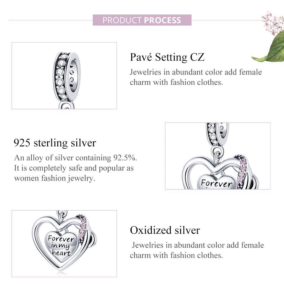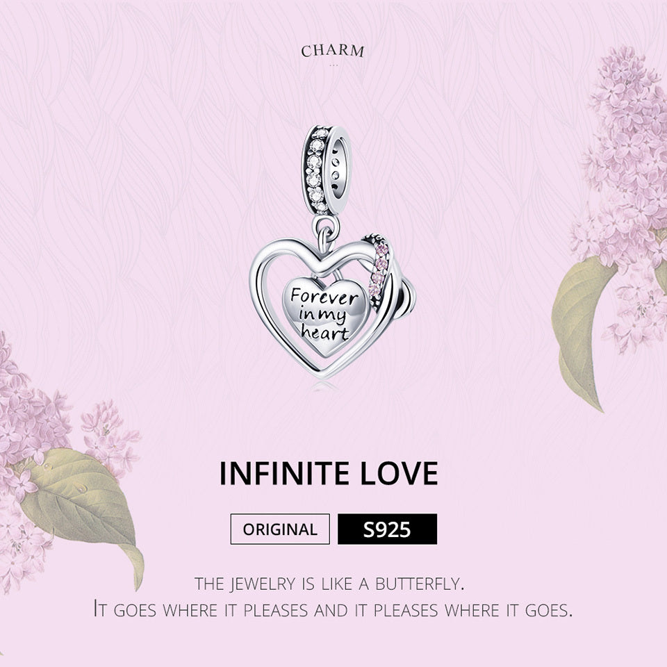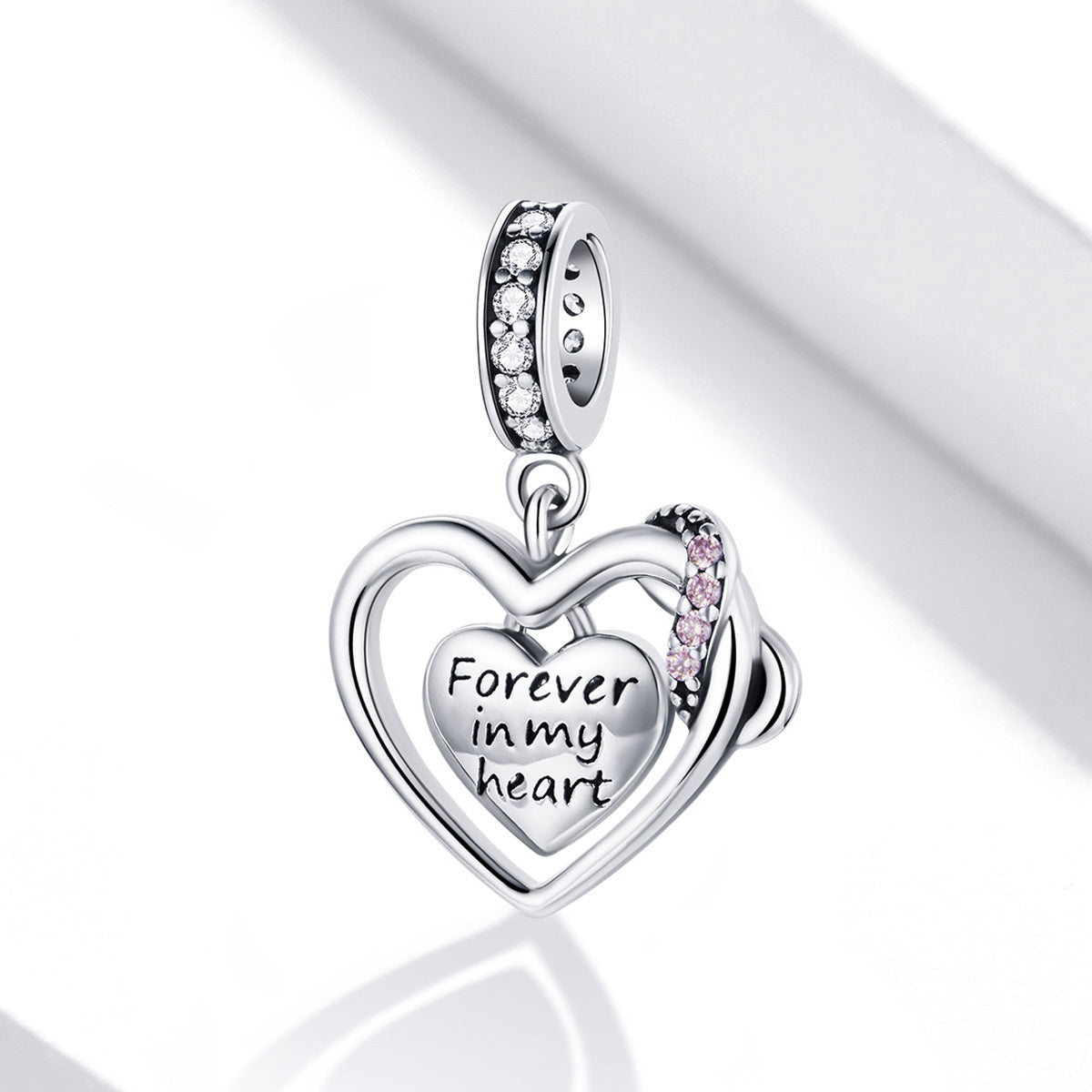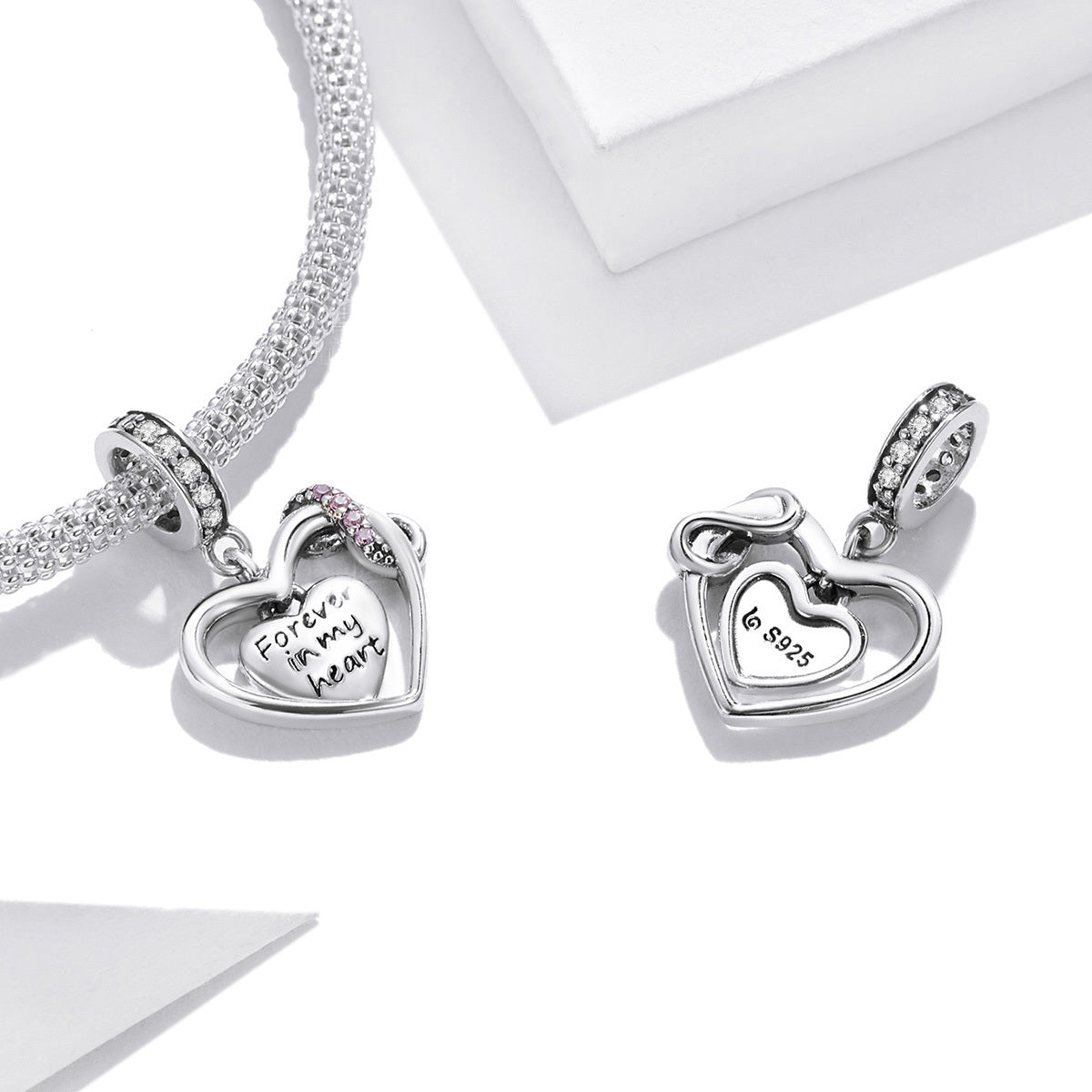 Create your own personalized jewelry with this sterling silver heart-shaped theme charm pendant. Ideal for bracelets, necklaces, bangles, and more.