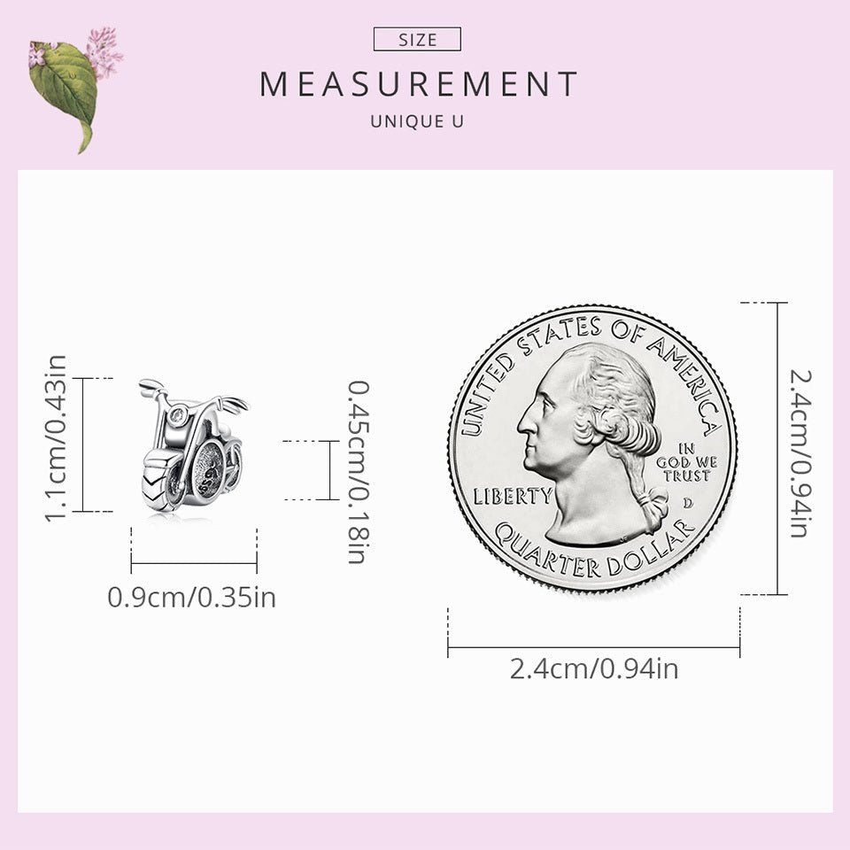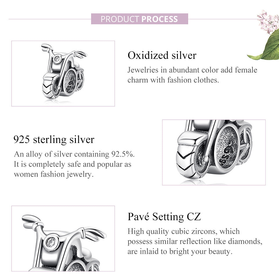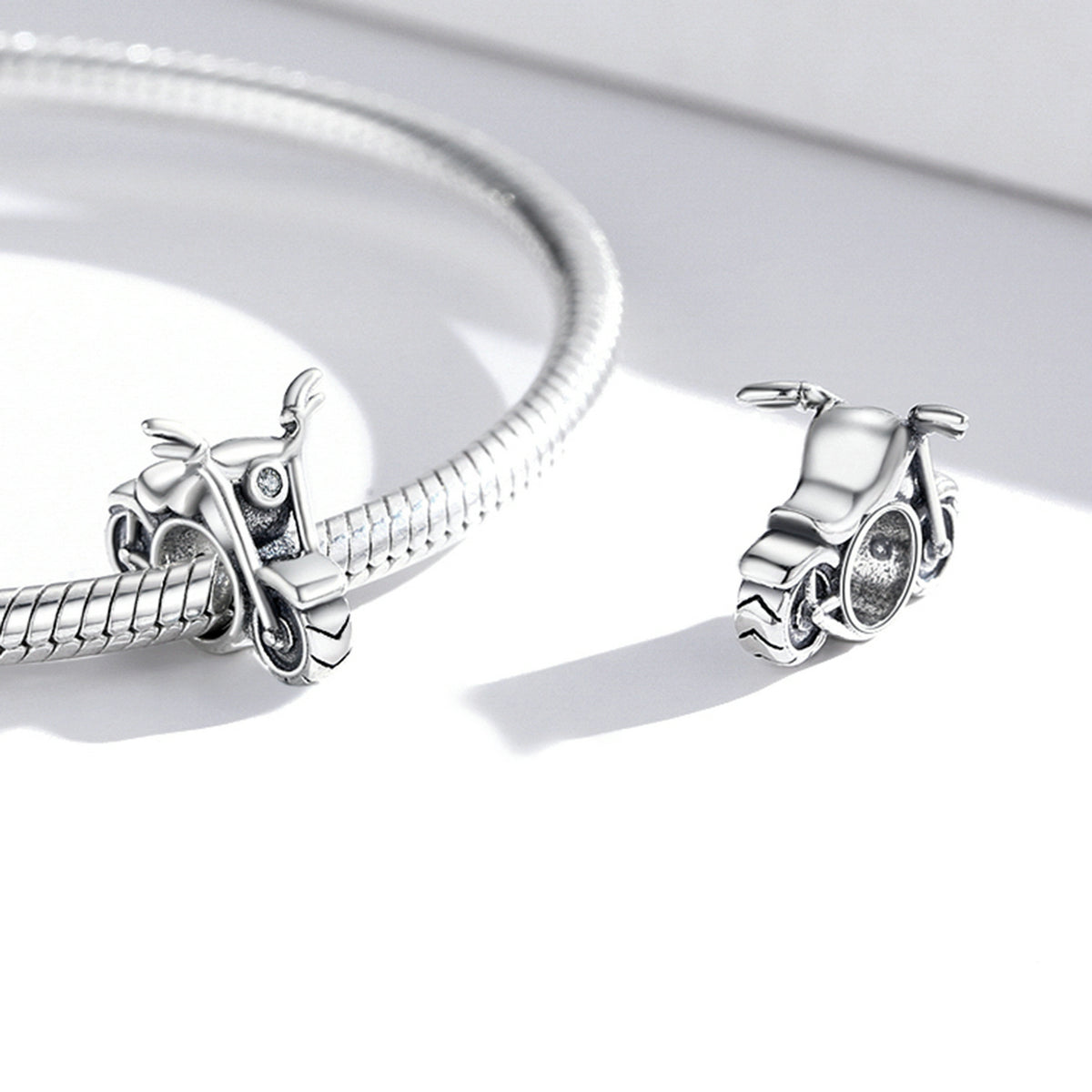 Add a touch of retro charm to your jewelry with these 925 sterling silver motorcycle style beads charms. Perfect for bracelets and necklaces, this DIY jewelry piece makes a great gift for women.