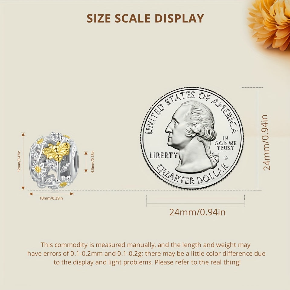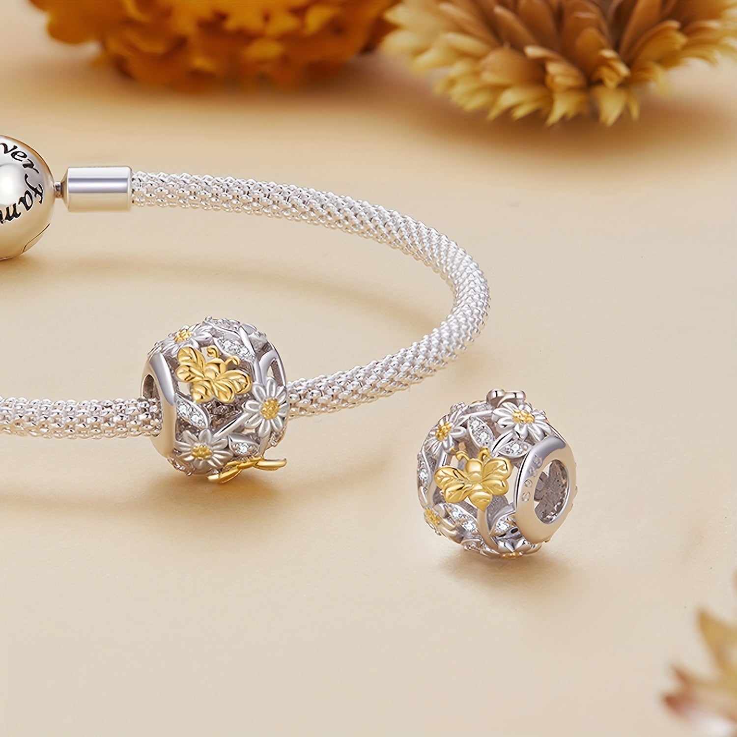 Beautiful 925 Sterling Silver Daisy & Golden Bee beads designed for women's bracelets and bangles. Create your own fine jewelry with these exquisite beads.