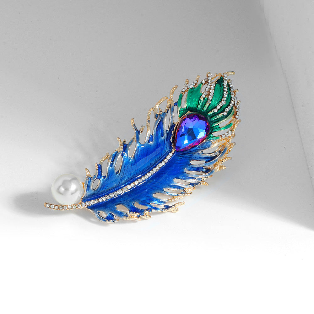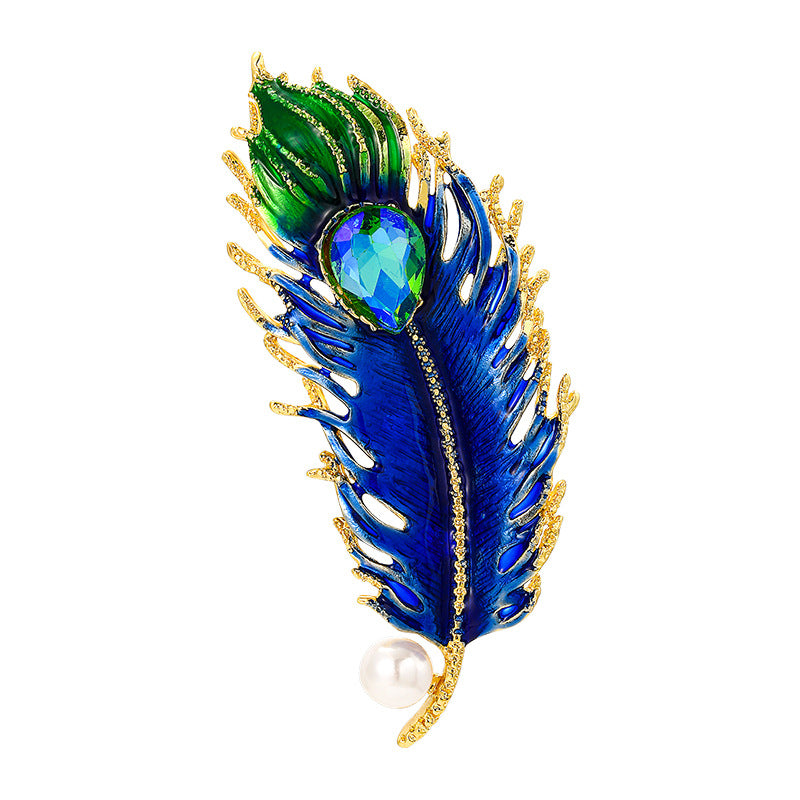 Add a touch of elegance with this peacock feather brooch pin featuring rhinestones. Perfect for weddings, banquets, or as a gift for women.
