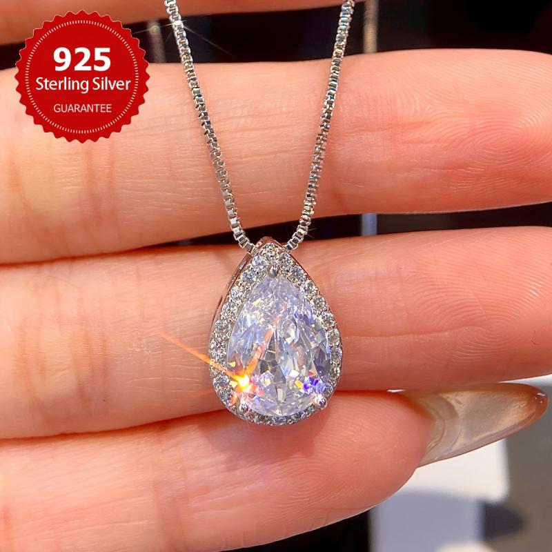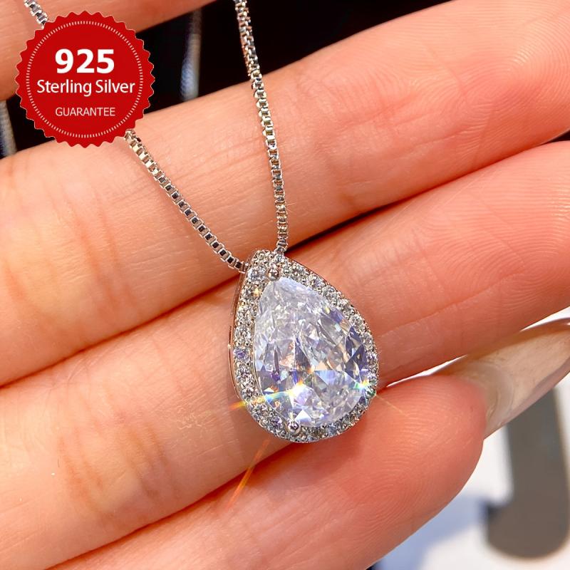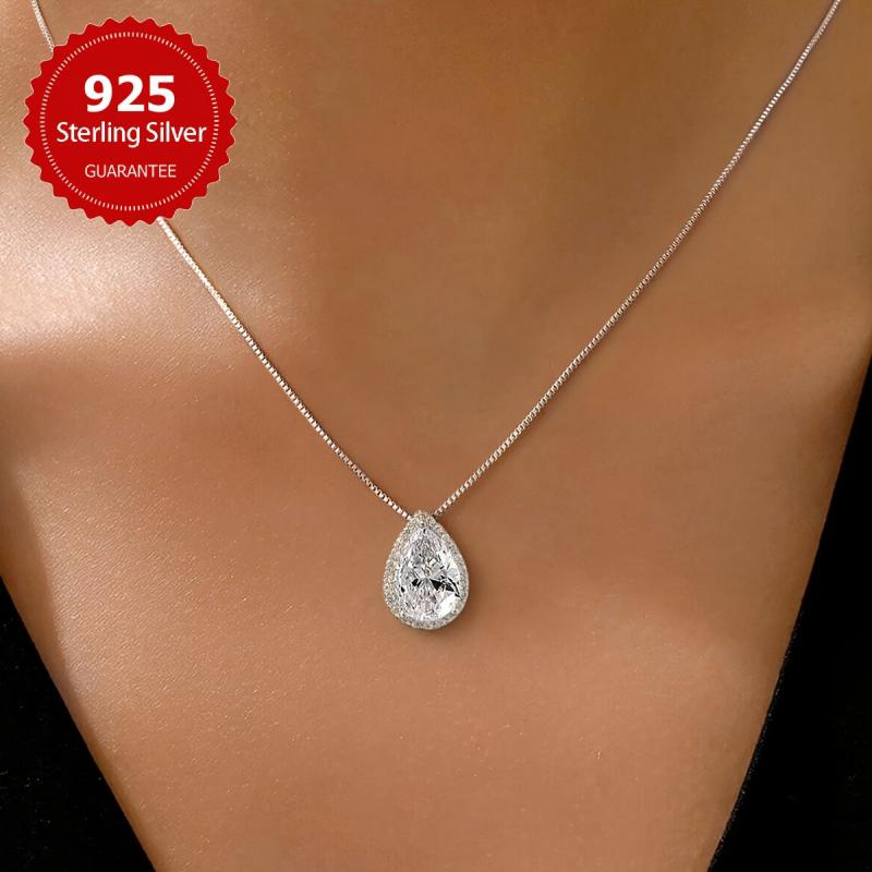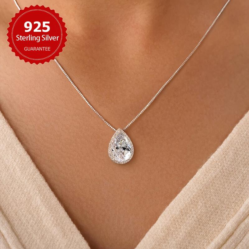 Elegant necklace featuring a sparkling pear-shaped zirconia pendant crafted in sterling silver.