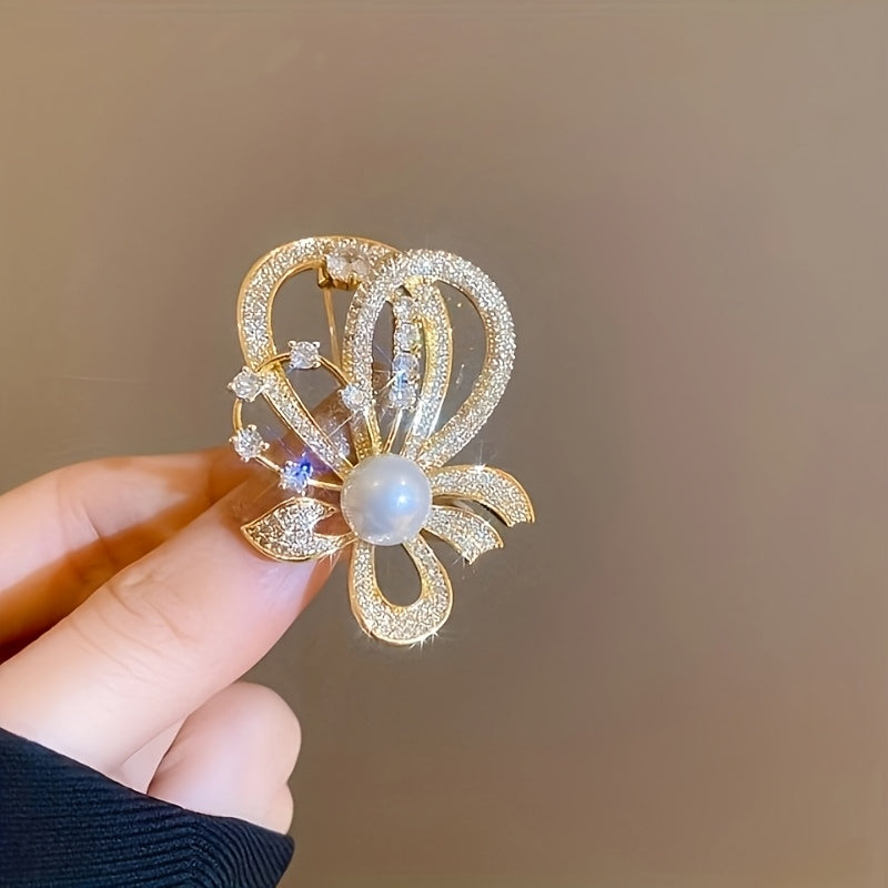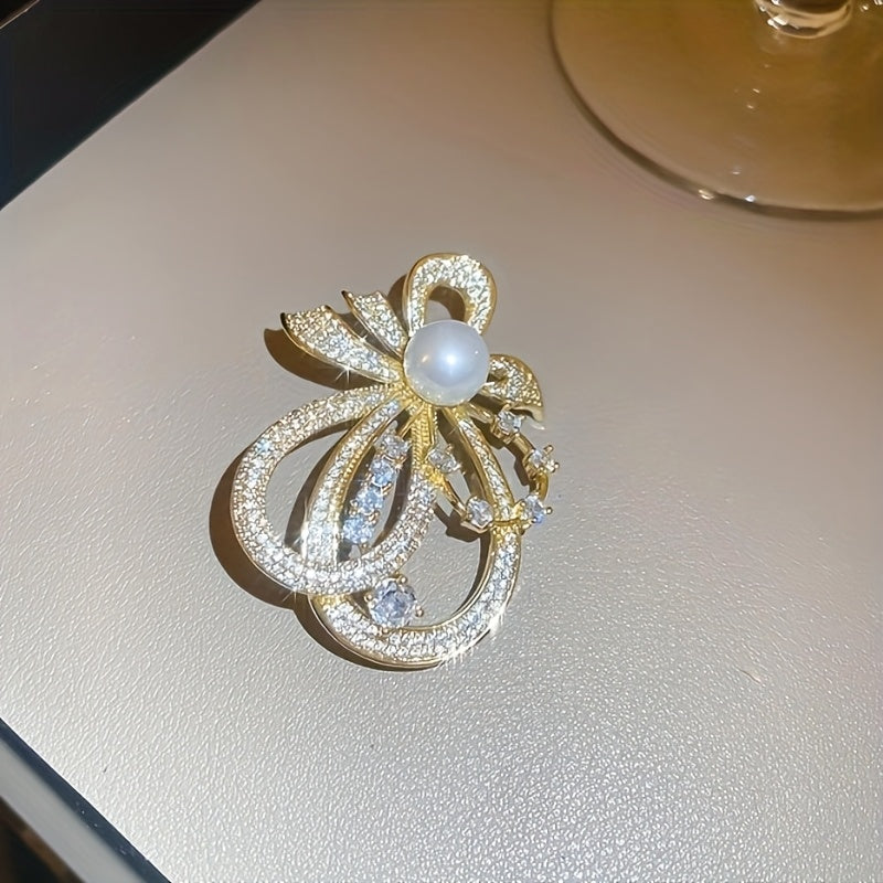 Add a touch of sophistication with this elegant bow brooch featuring timeless pearls in a delicate design.