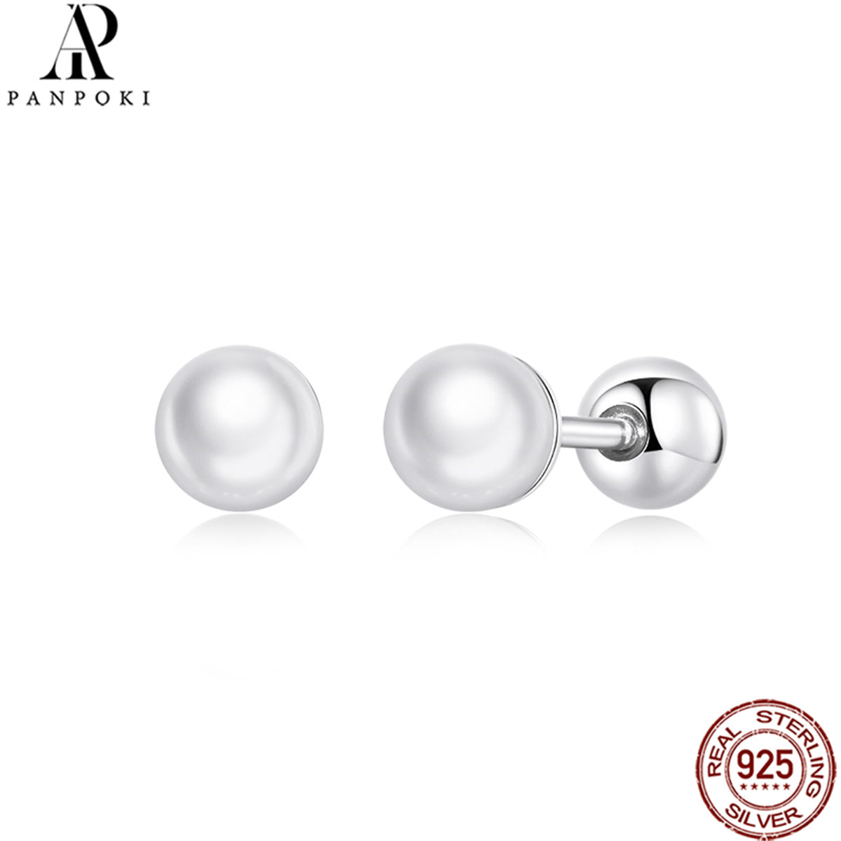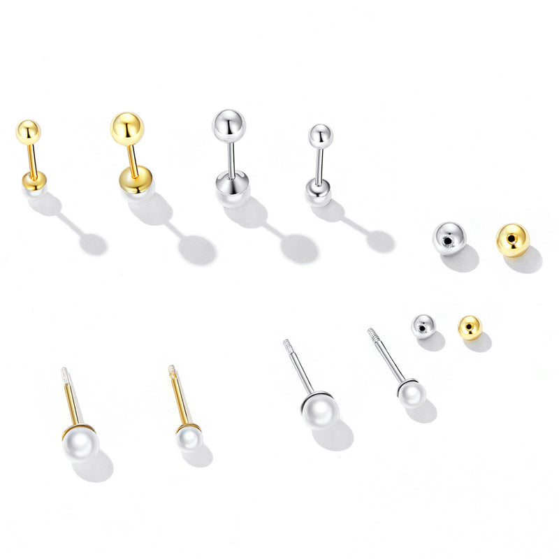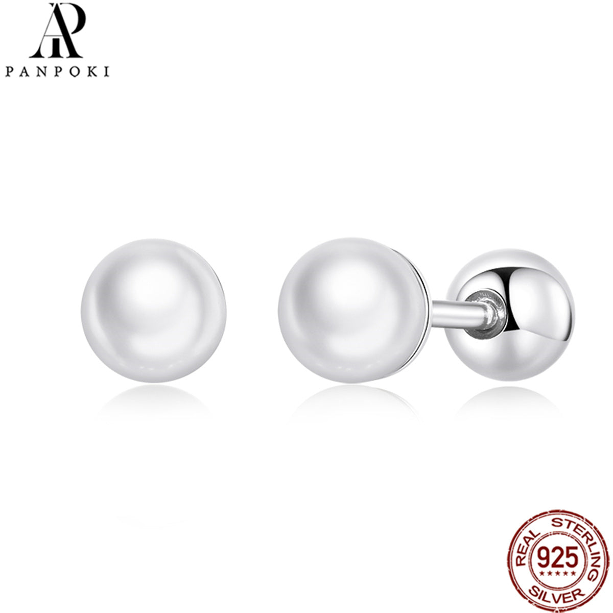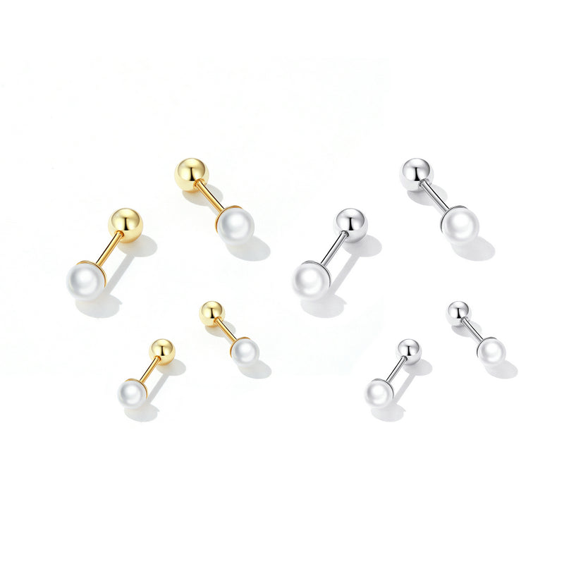 Pearl Decor S925 Silver Stud Earrings With Ball Ear Stopper