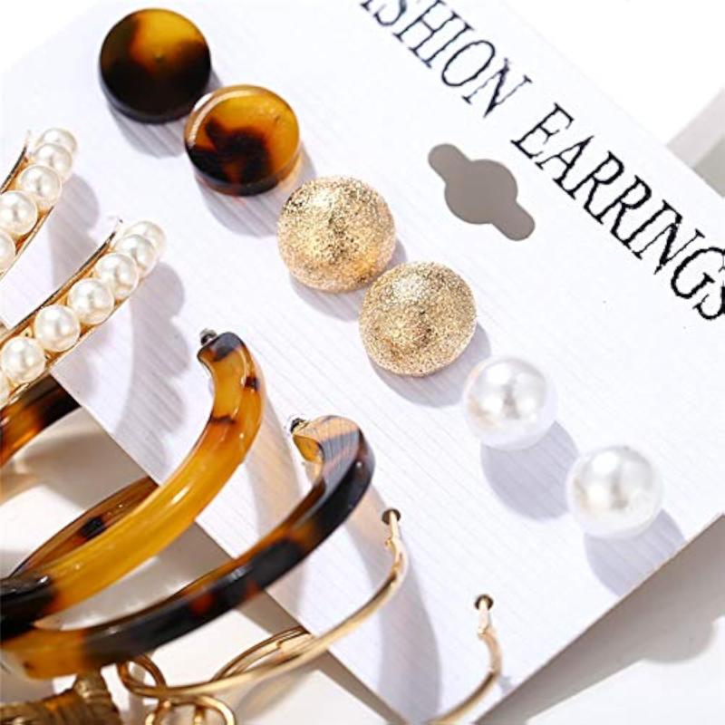 Enhance your look with this versatile set of 6 pairs of earrings featuring pearl designs. Perfect for everyday wear or special occasions.