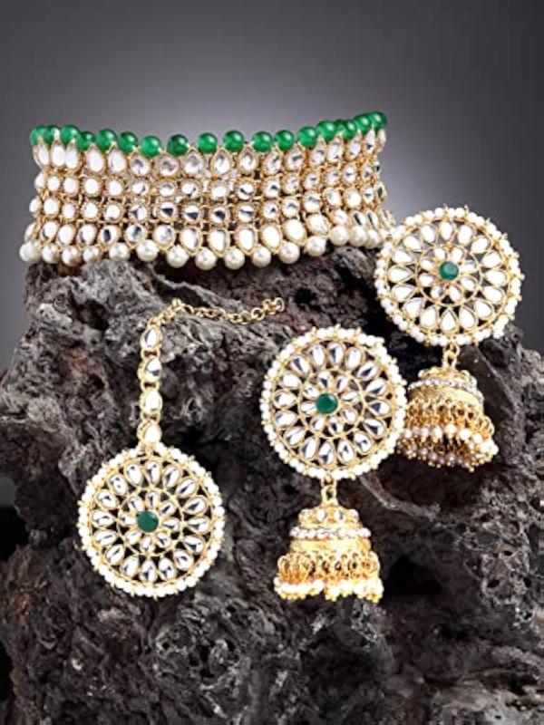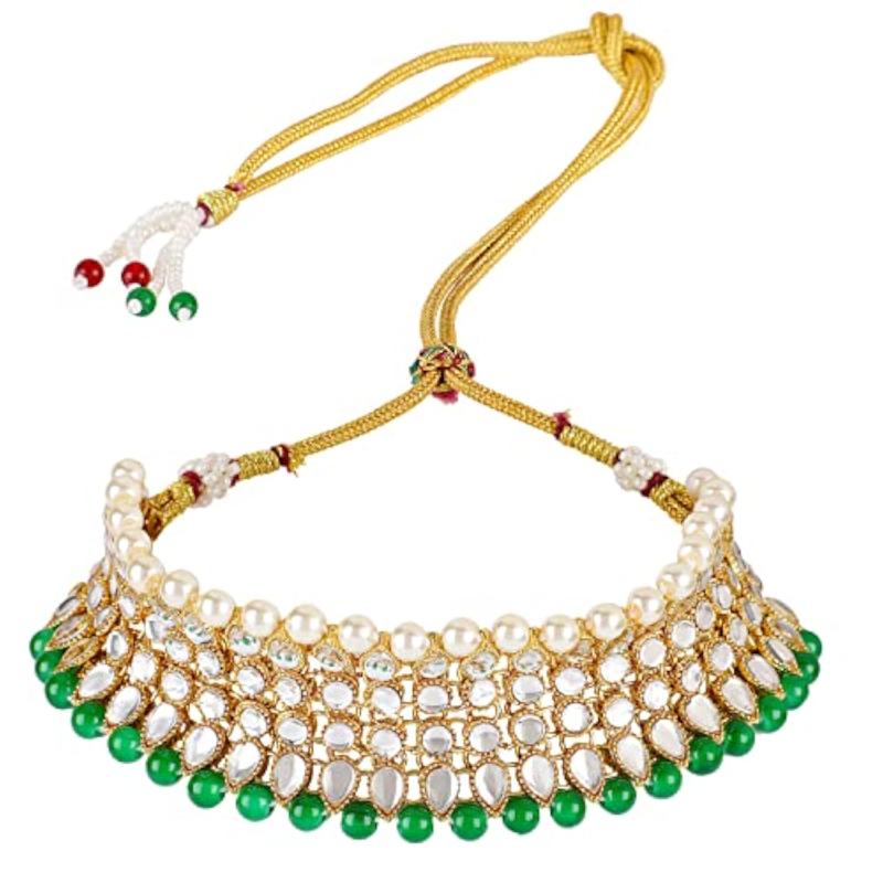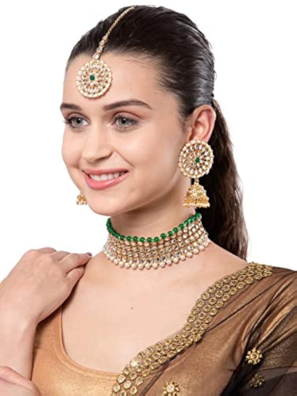 Elegant and traditional pearl kundan necklace set with matching earrings. Perfect for special occasions and weddings.