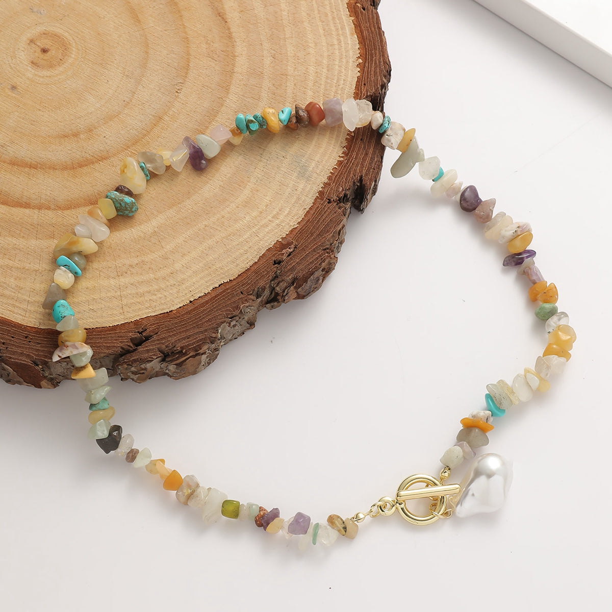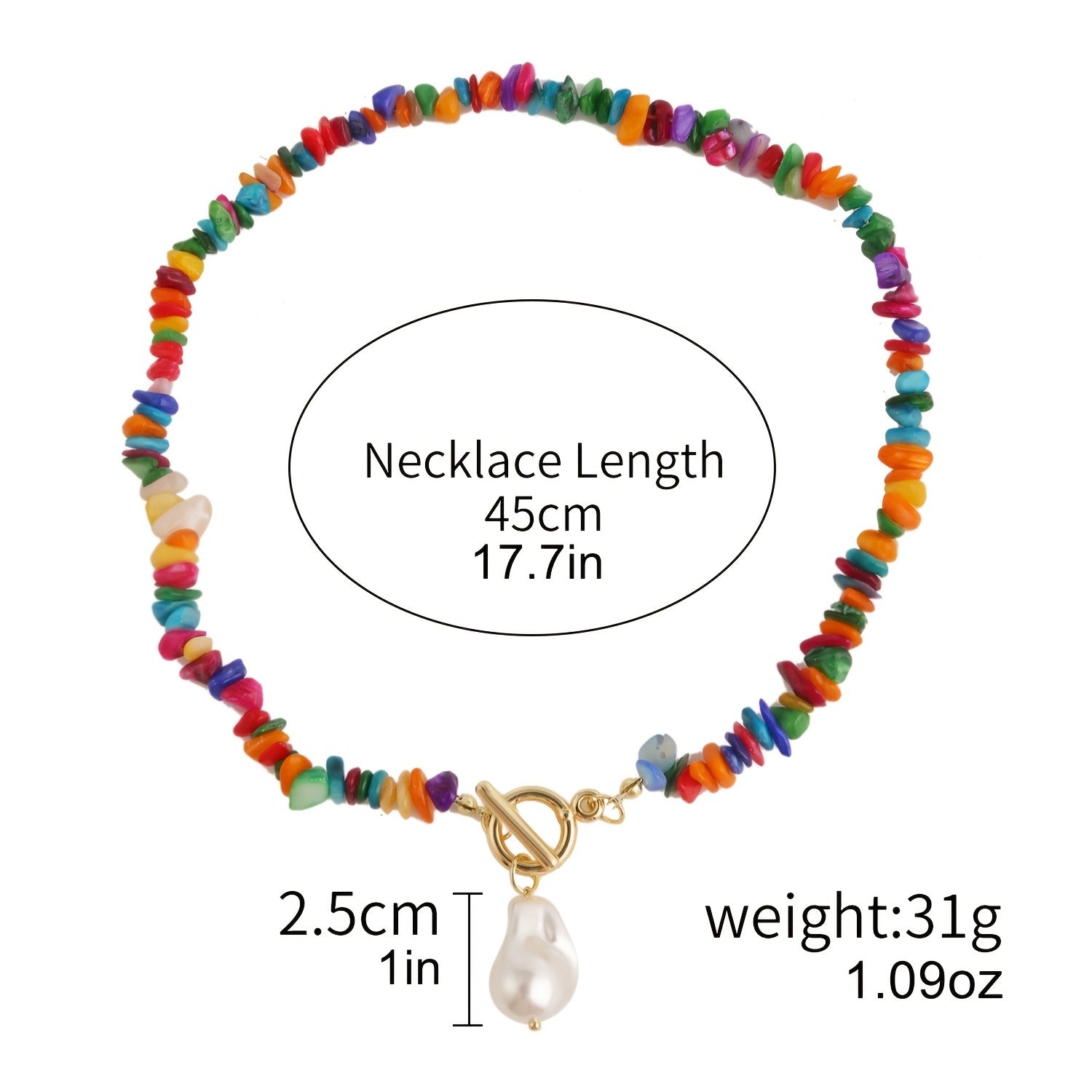 Elegant necklace featuring a single shaped pearl pendant with multicolor stones. A beautiful addition to any woman's jewelry collection.