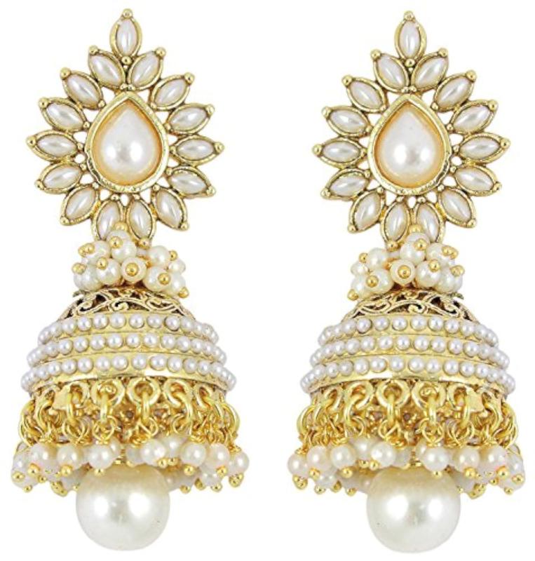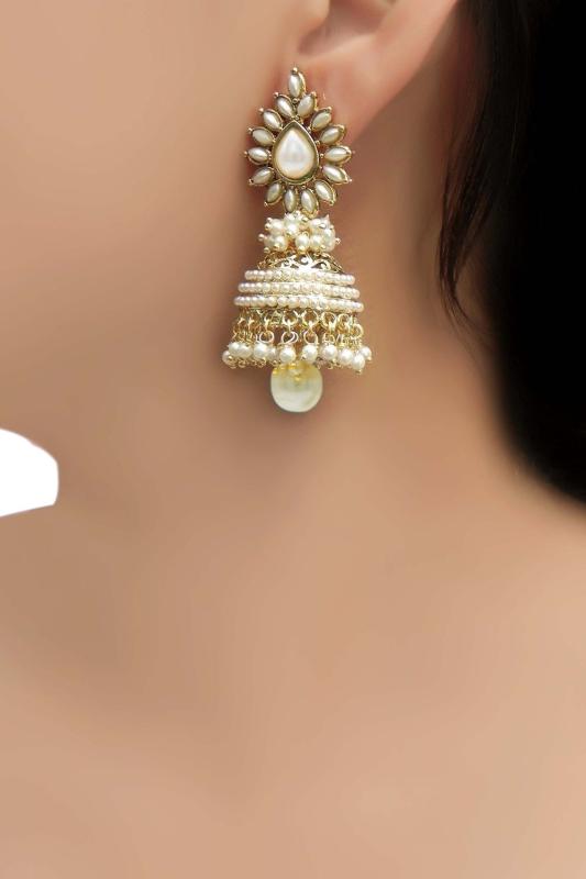 Elegant jhumki earrings with pearl and polki stones. Perfect for traditional occasions.