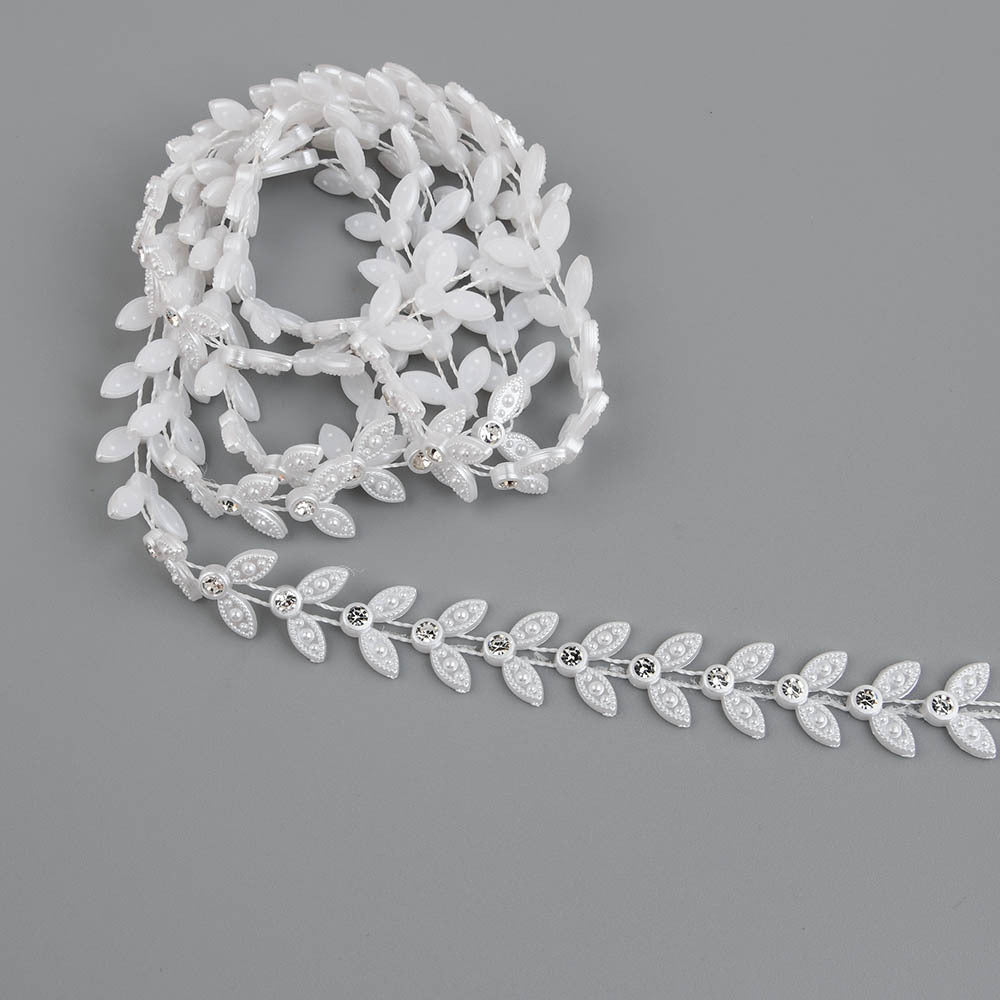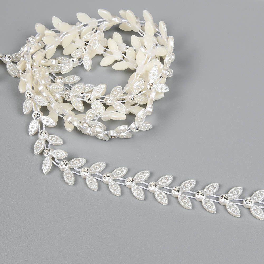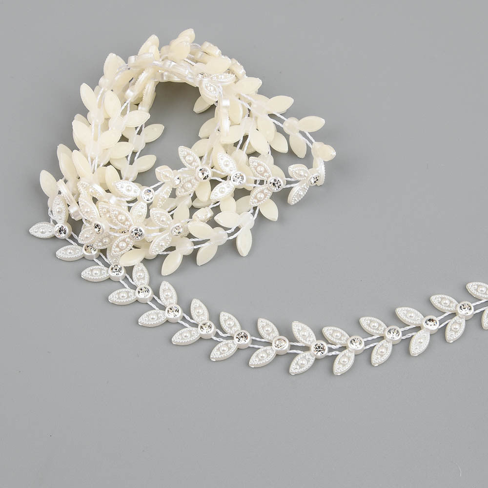 Add a touch of elegance to your wedding clothes, cakes, or home decor with this ABS flatback faux pearl chain featuring round rhinestones. Perfect for DIY projects and crafts.