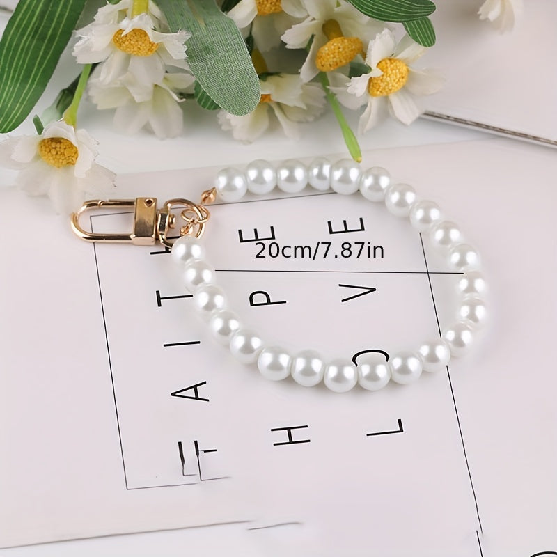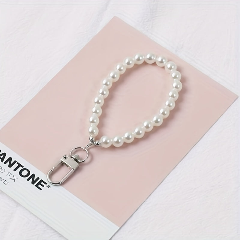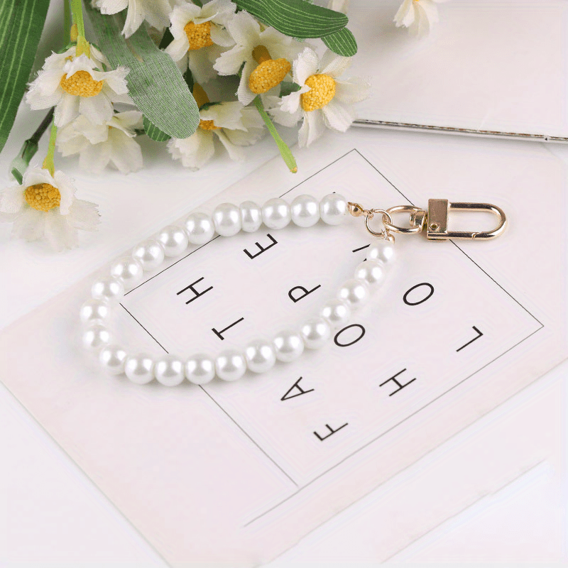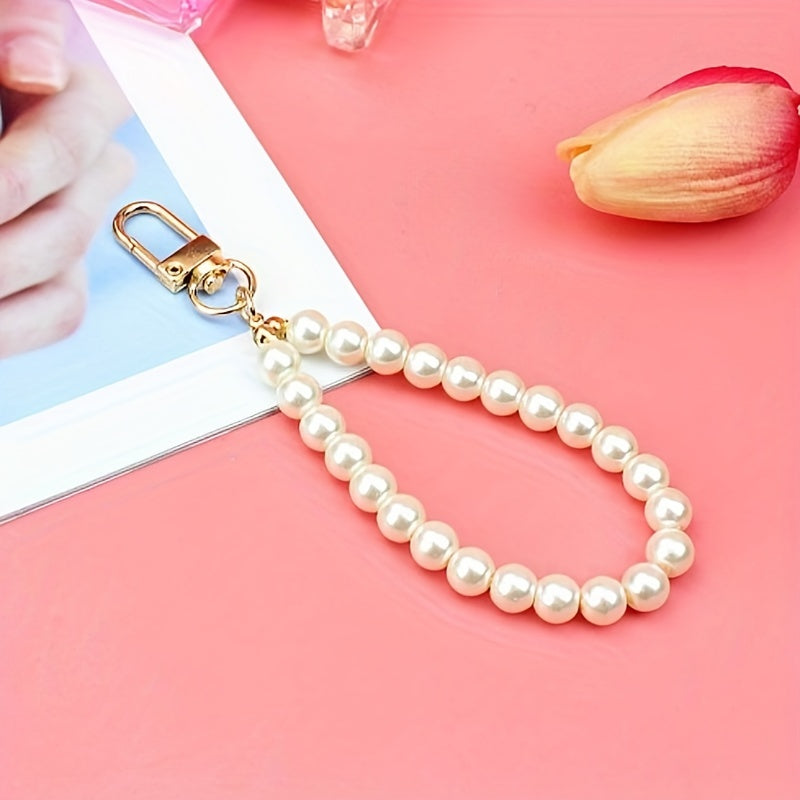 This stylish key chain features a pearl short chain with a diamond ring pen. It's perfect for accessorizing your keys or attaching to your bag.