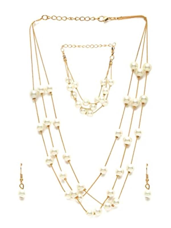 Elegant jewellery set with pearl studded design, perfect for special occasions.