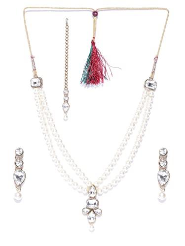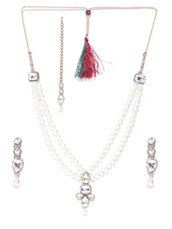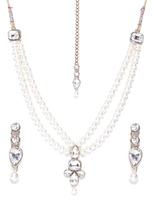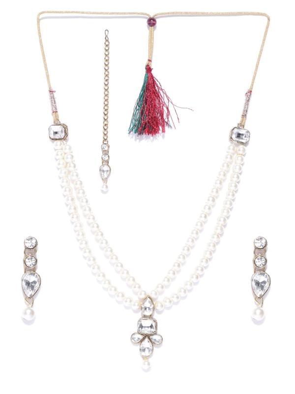 Elegant and stylish pearl studded necklace set with matching earrings for women.