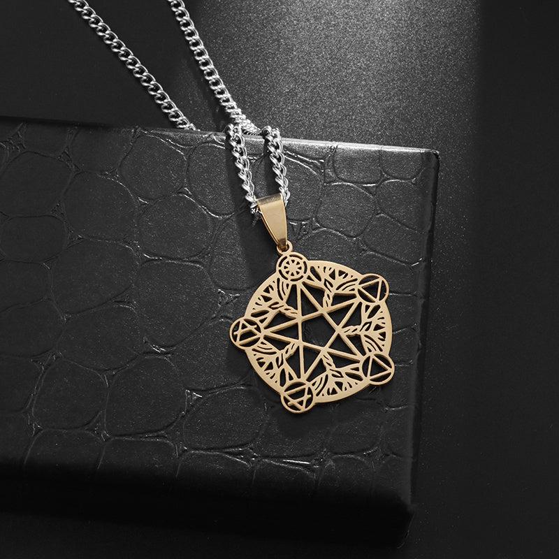 This pentagram witch necklace is perfect for both men and women, made of high-quality stainless steel. It features an eternity and mystical magic design, symbolizing religious beliefs.