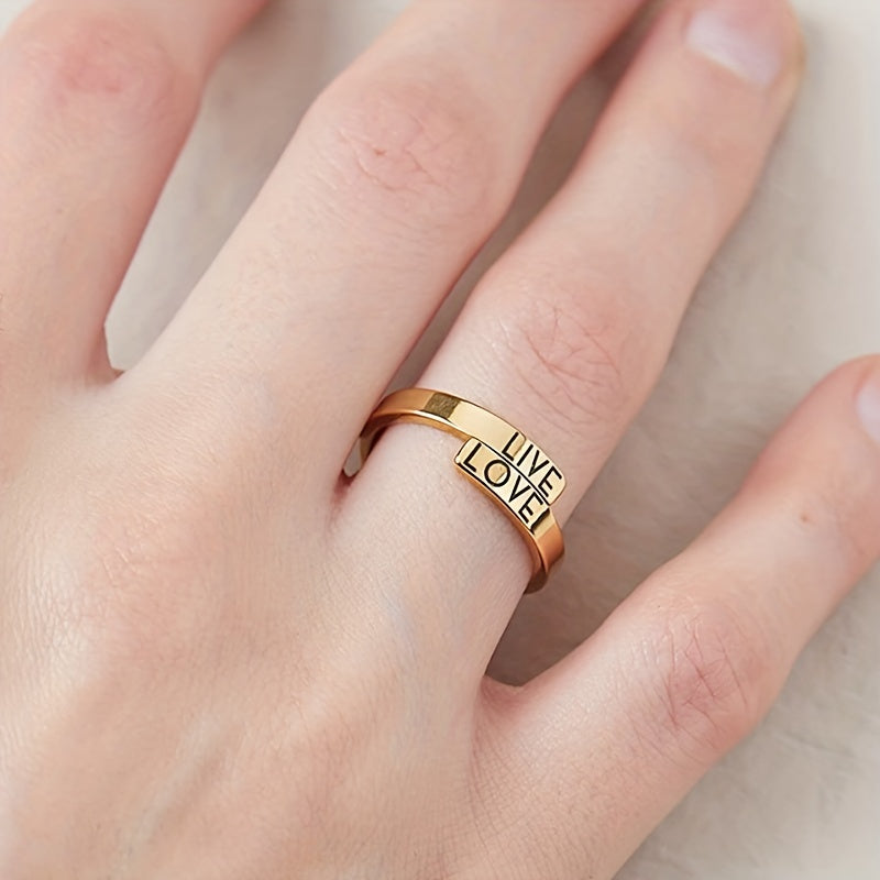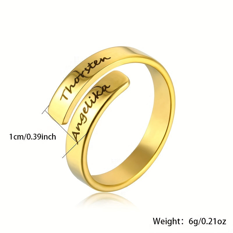This adjustable ring is made of 316L stainless steel with an elegant 18k gold plating. Customize it with your own engraving for a unique touch.
