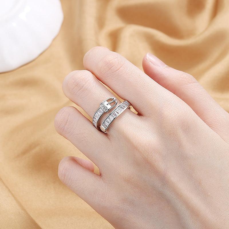 This stylish alloy ring features a unique belt buckle design, making it a perfect addition to your jewelry collection. Ideal for women, this ring is a great gift choice.