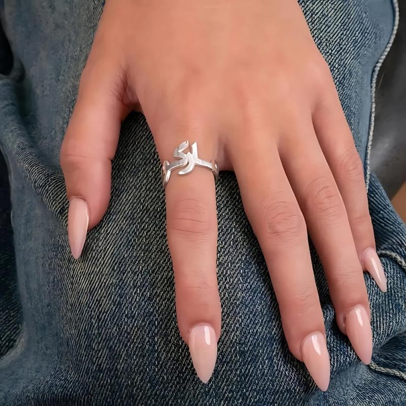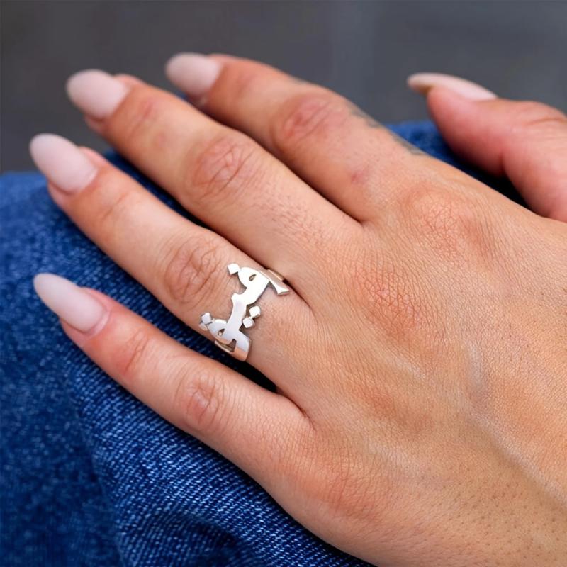 This adjustable open ring features an intricate script design for a custom Arabic name.