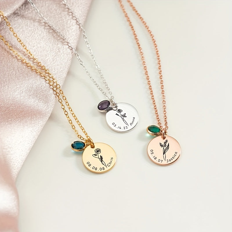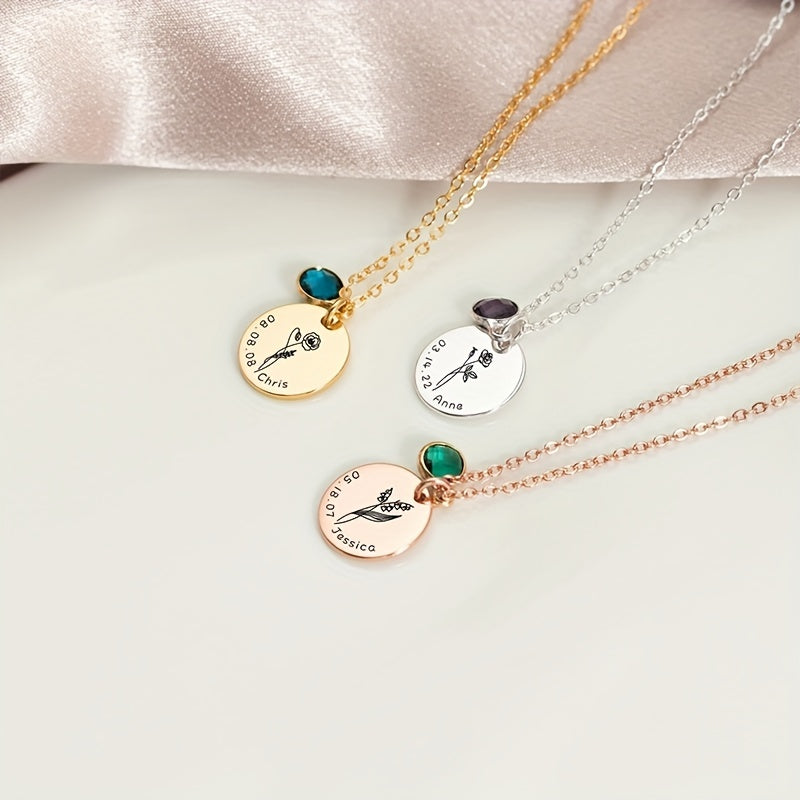 This stunning men's jewelry features a birthstone pendant with a personalized name and anniversary engraving. A perfect way to celebrate special occasions and create a meaningful gift.