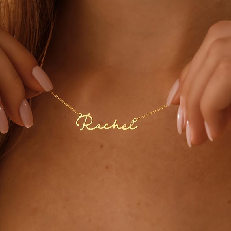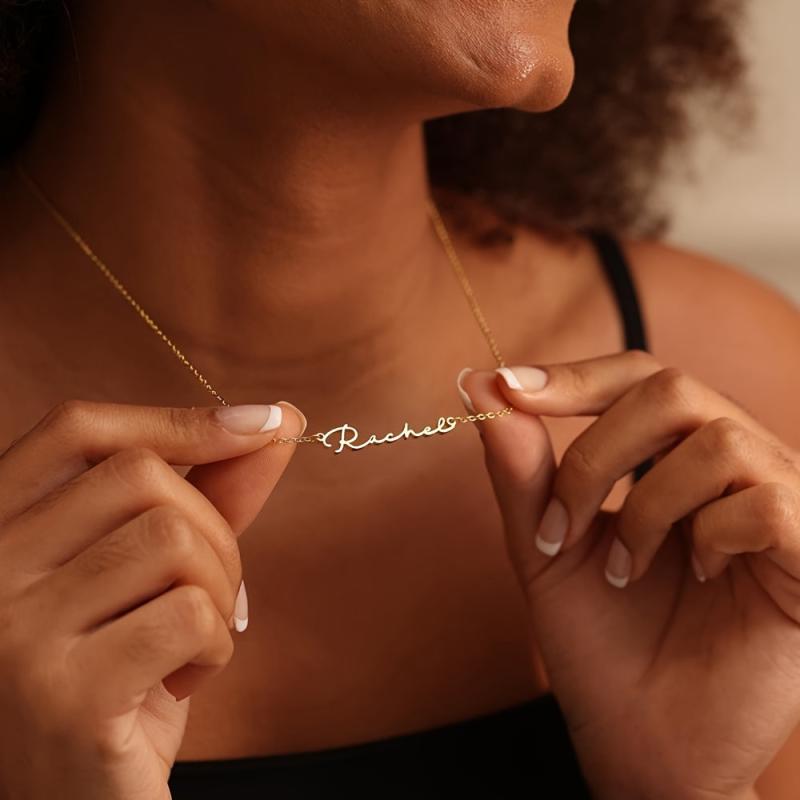 Get a unique and stylish look with this custom stainless steel name necklace. A minimalist design that adds a personal touch to any outfit.
