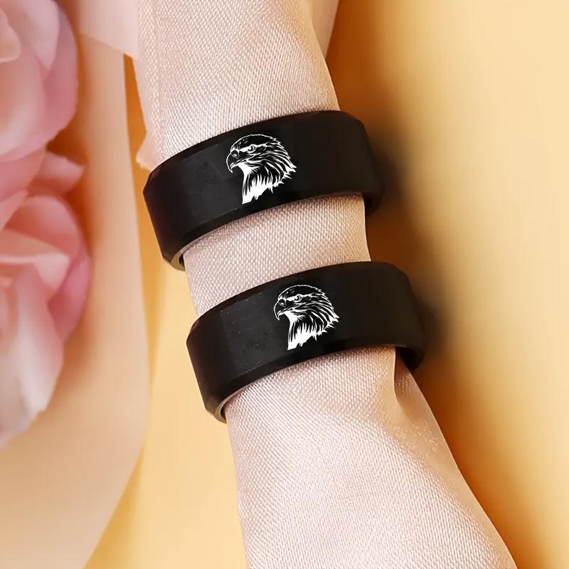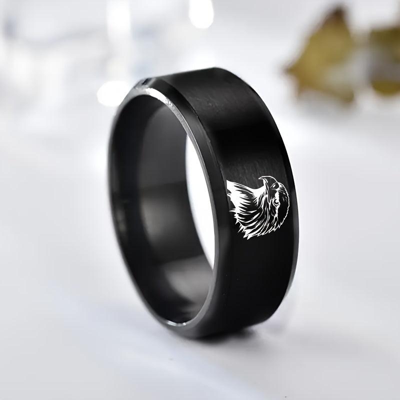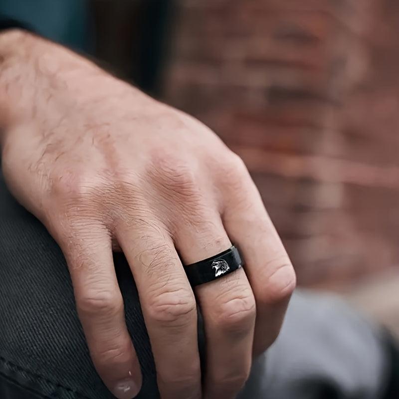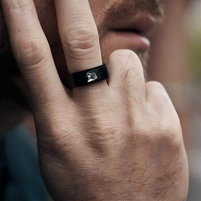 This custom engraved 201 stainless steel ring features an eagle head design, perfect as a Father's Day or anniversary gift. The durable uncoated finish adds a touch of rugged charm.