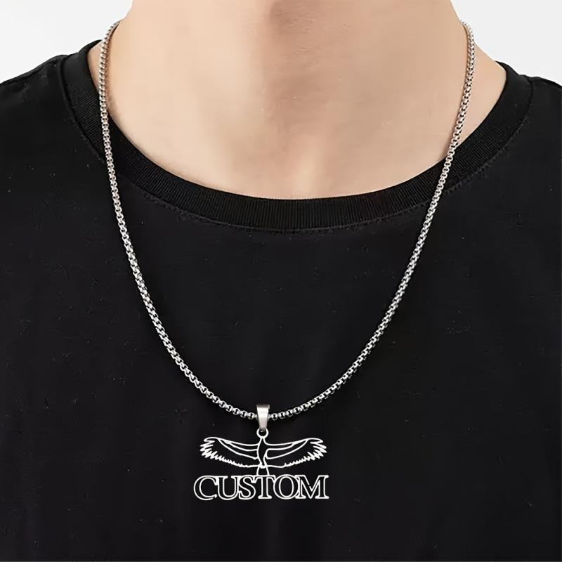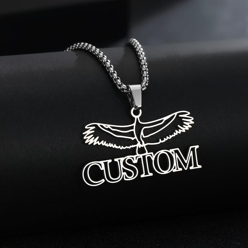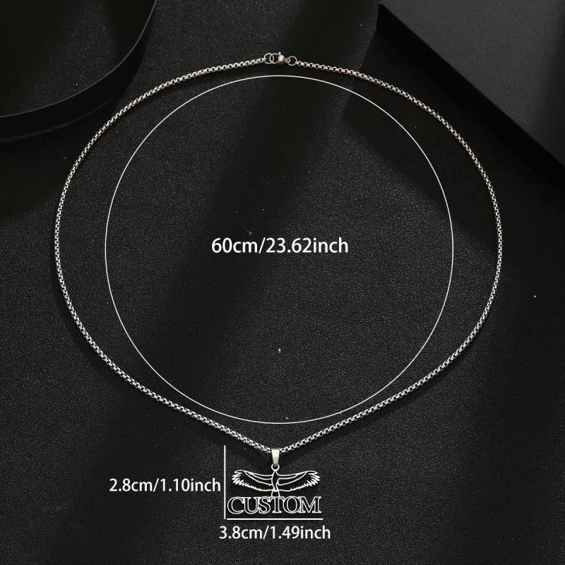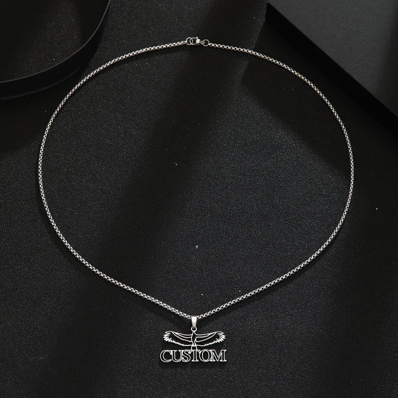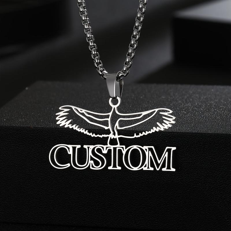 Make a bold statement with this stainless steel necklace featuring a unique eagle pendant and your custom engraving. Perfect for men and women, this durable piece of funky animal jewelry makes a great Christmas gift.